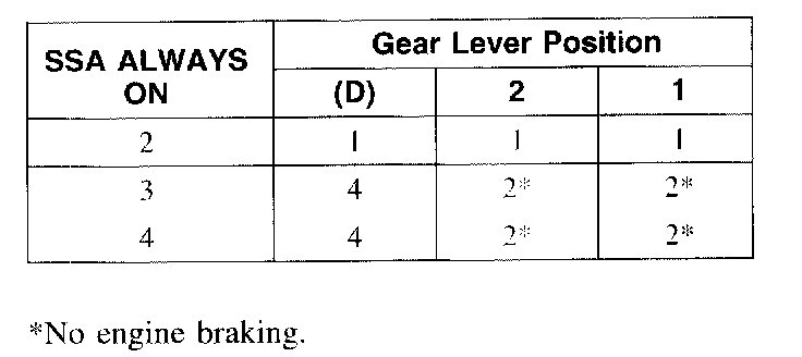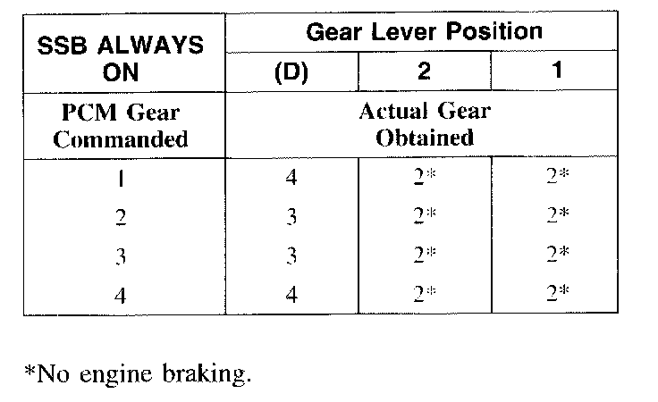 Shift Solenoid Failure Mode Chart "Always On"