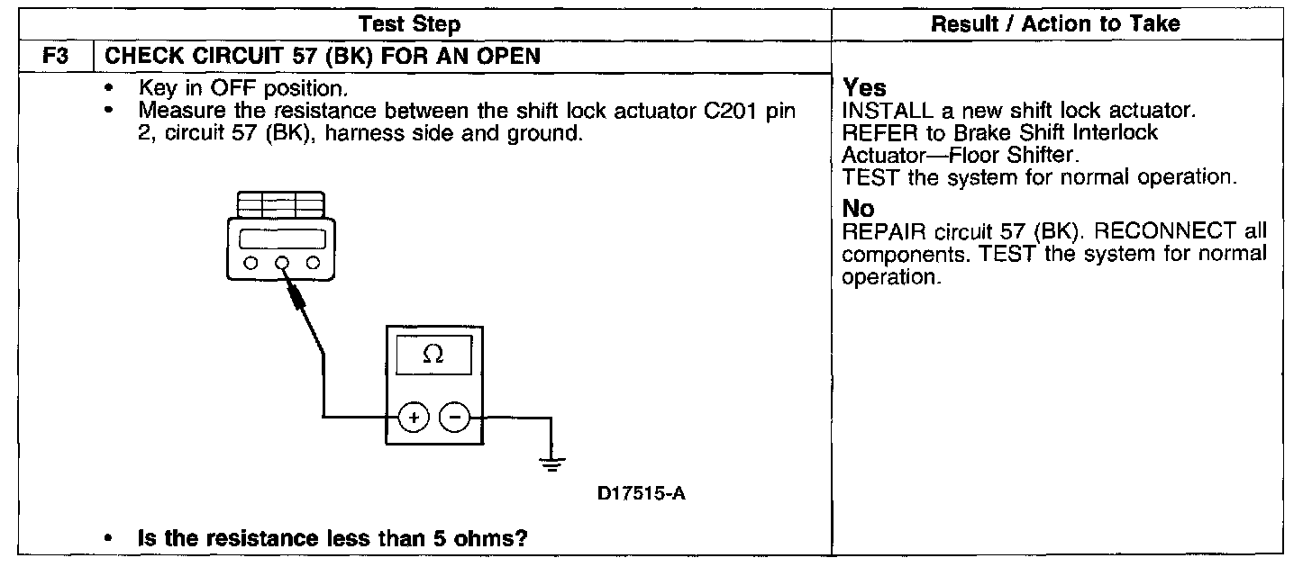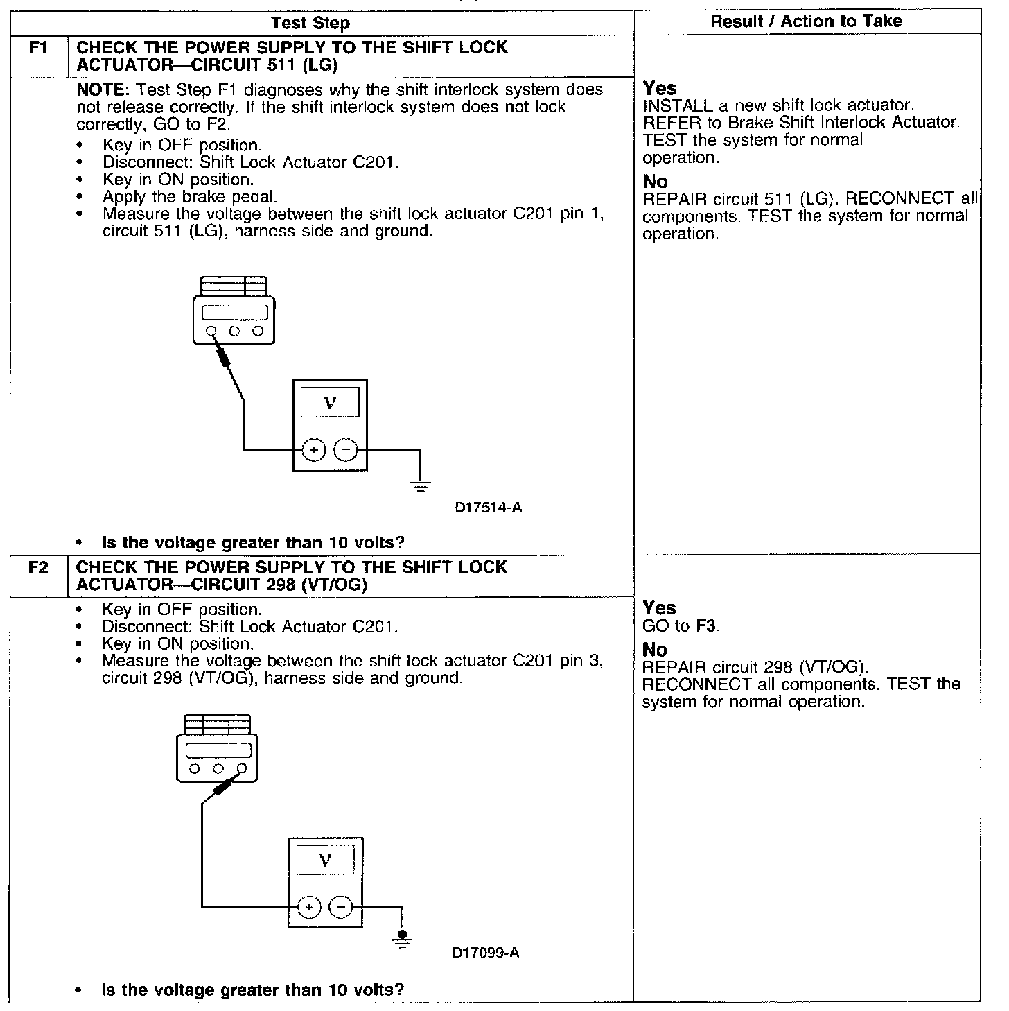 Test F: The Shift Interlock System Doesn't Release/Lock Correctly