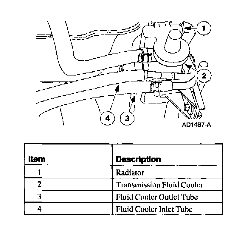 Transmission CoolingThe transmission fluid cooler is an oil-to-air fluid cooler with a thermostatic bypass valve. The fluid cooler is mounted between the radiator and the condenser.