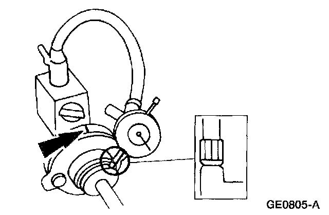 7. Position the Dial Indicator Gauge with Holding Fixture as shown. Turn the Drive Pinion Flange Runout Gauge, and locate and mark the high spot on the pinion flange with yellow paint.