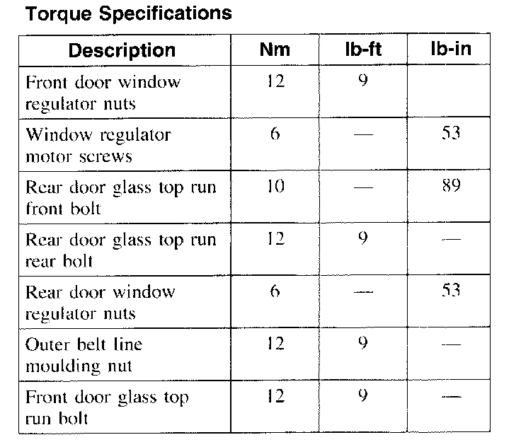 Torque Specifications: