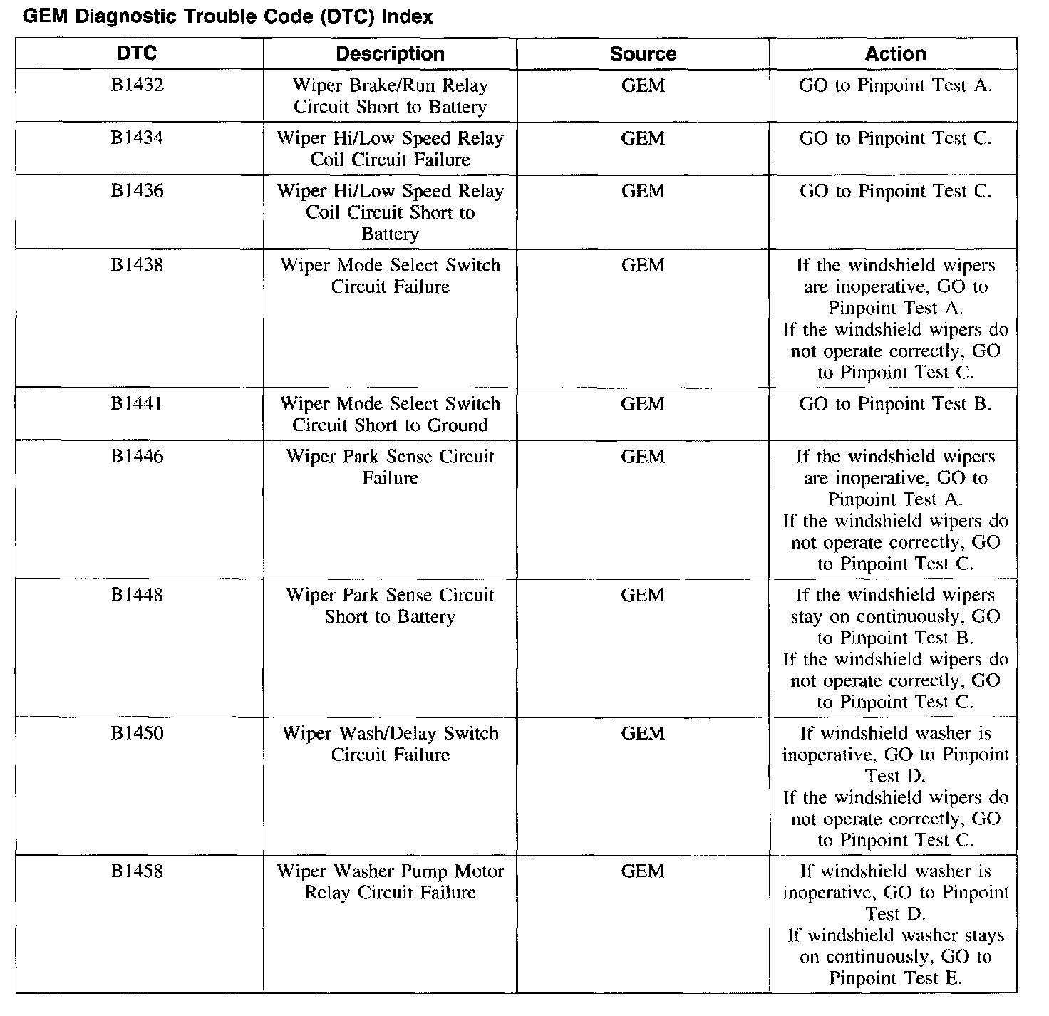 DTC Index B1432 - B1458: