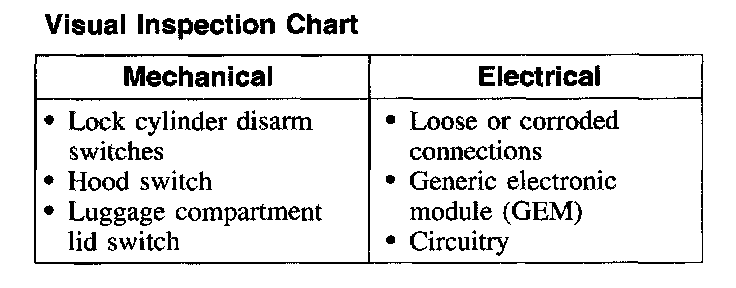 1. Verify the customer concern by operating the system.Visual Inspection Chart: