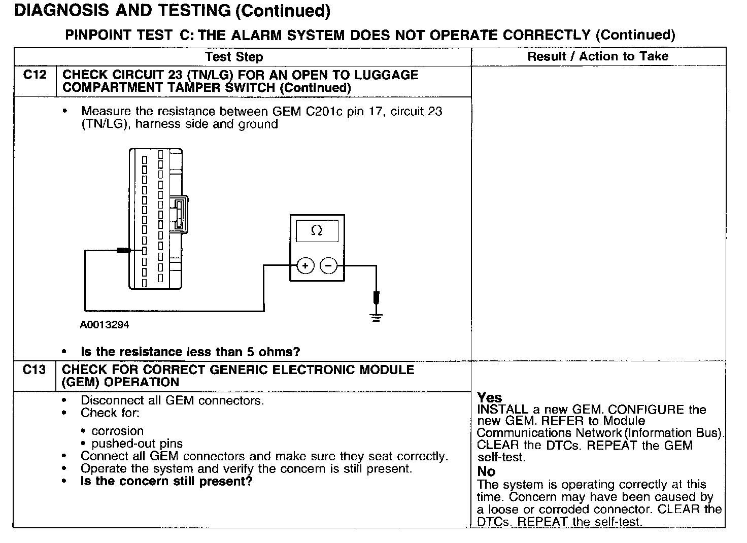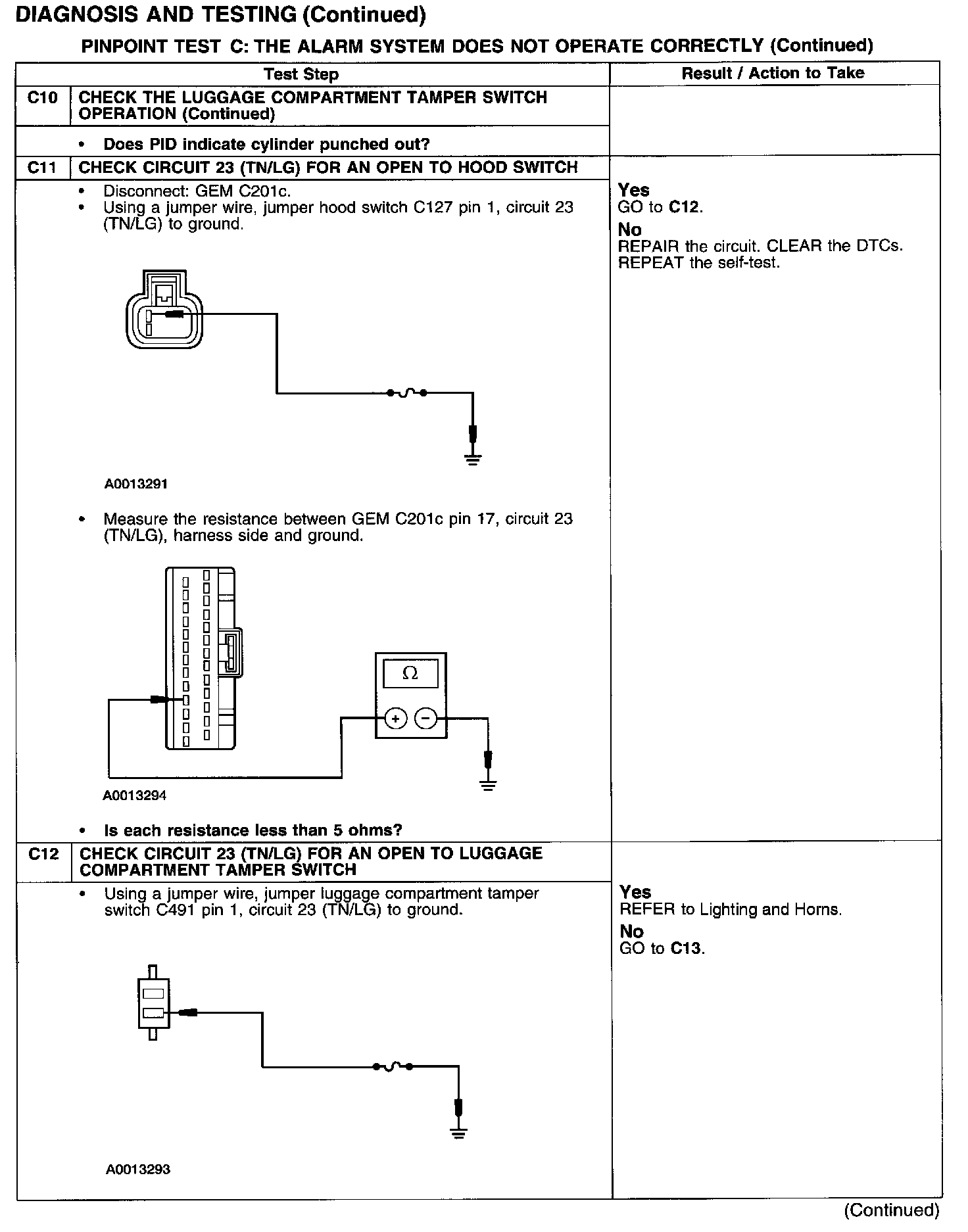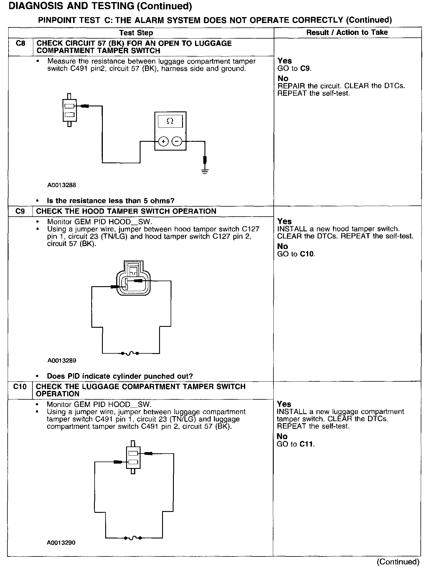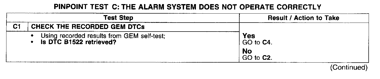 PINPOINT TEST C: THE ALARM SYSTEM DOES NOT OPERATE CORRECTLY