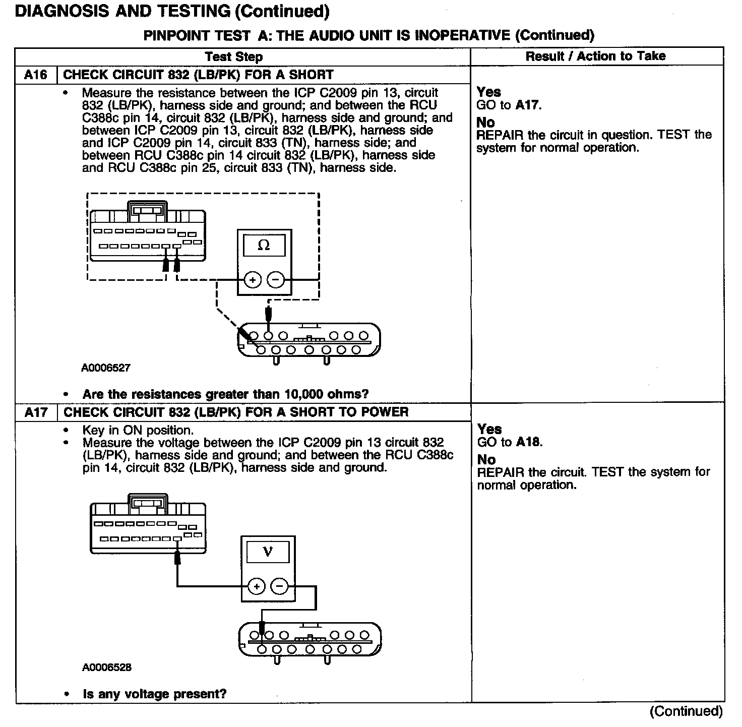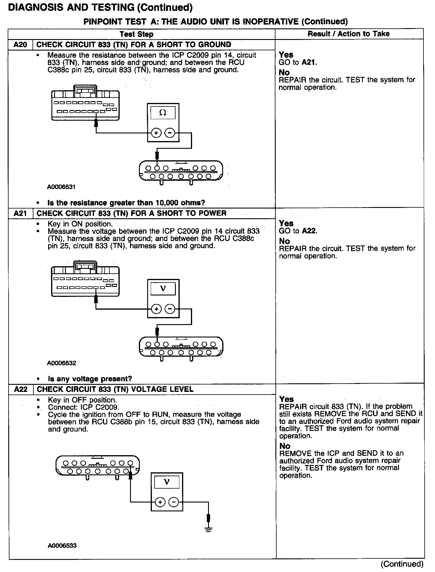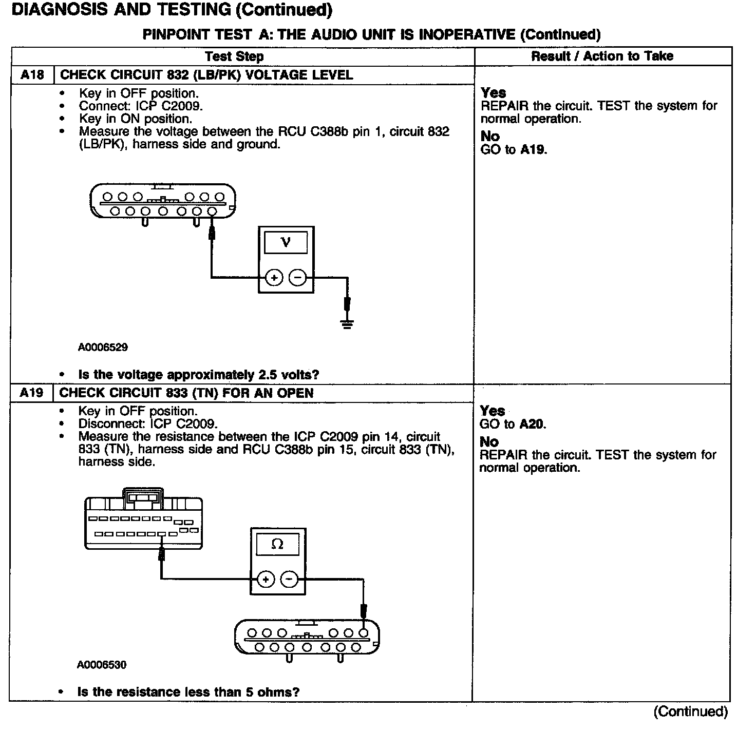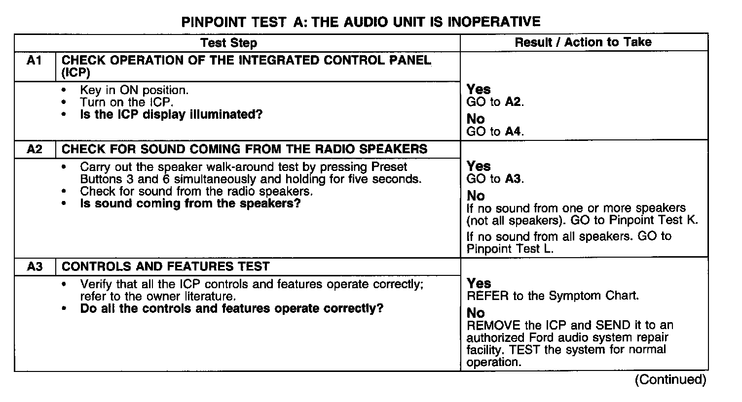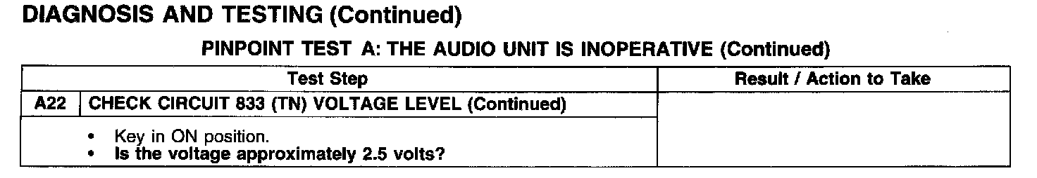 PINPOINT TEST A: THE AUDIO UNIT IS INOPERATIVE