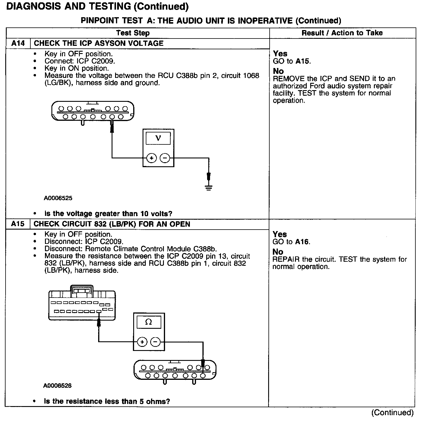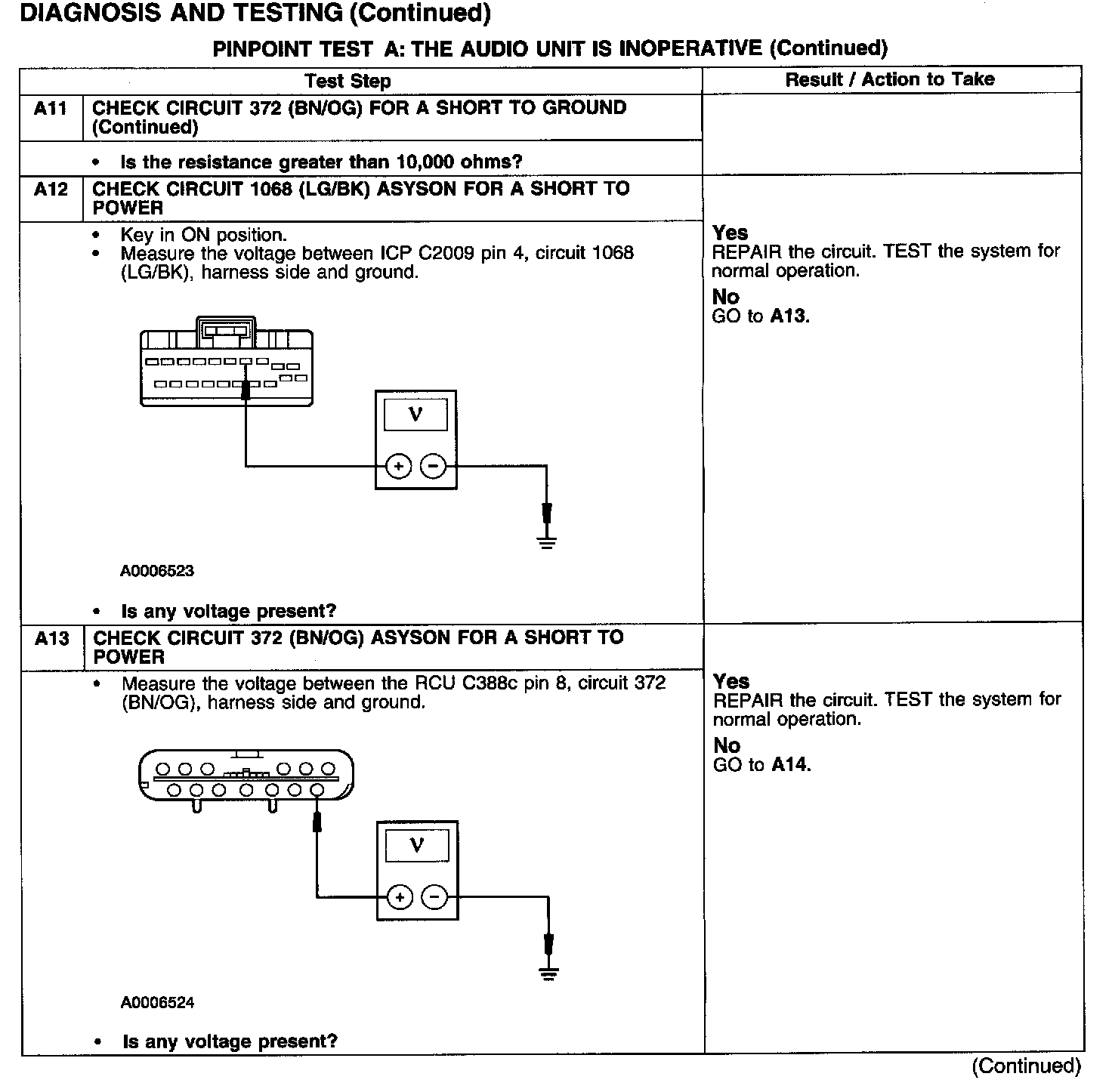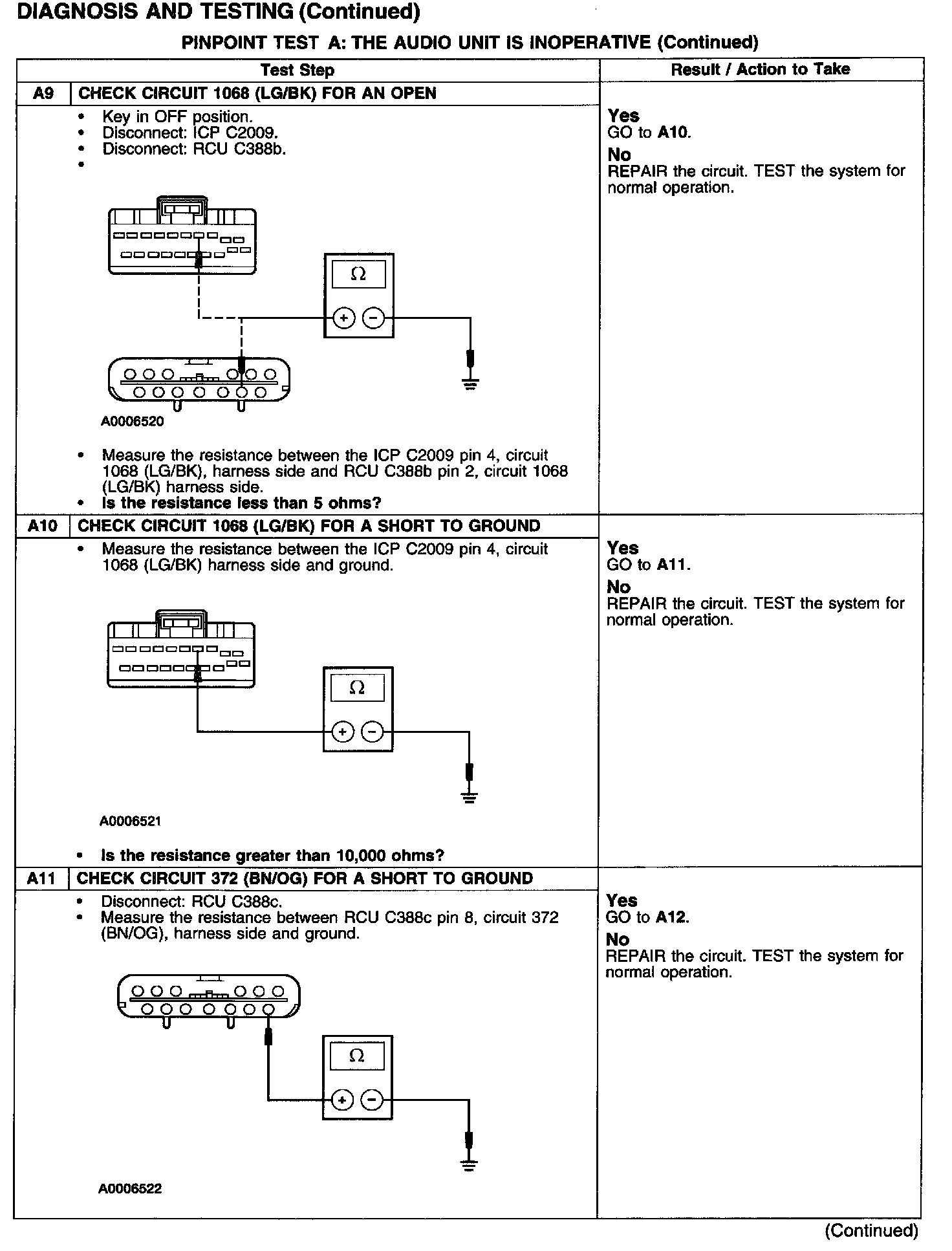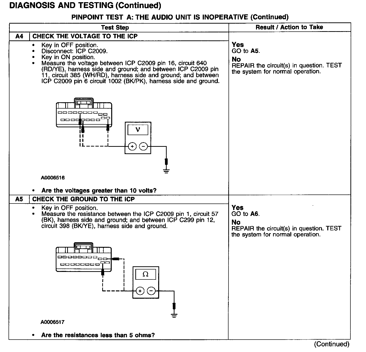 PINPOINT TEST A: THE AUDIO UNIT IS INOPERATIVE