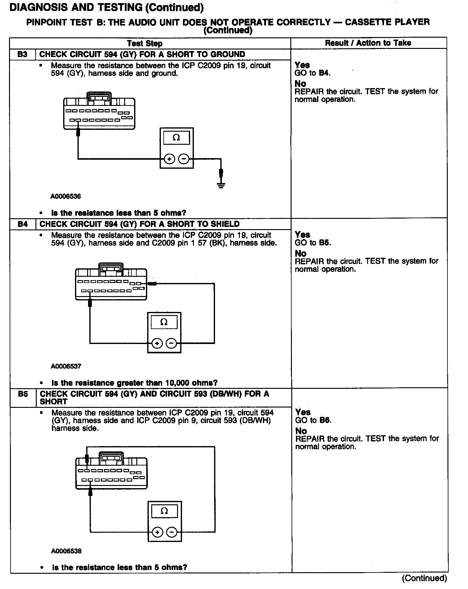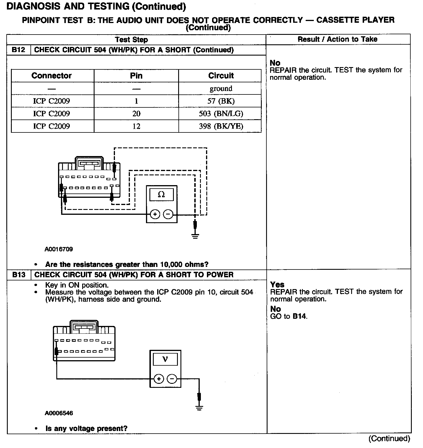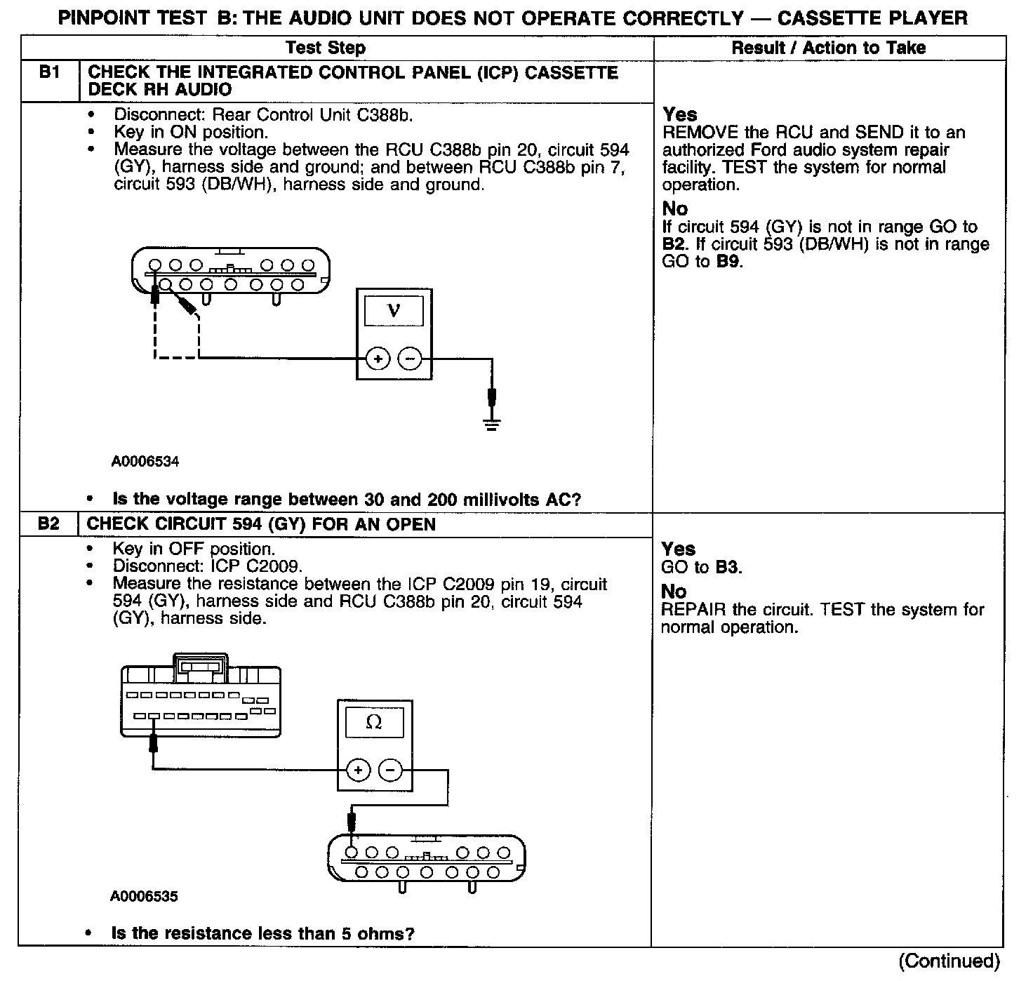 PINPOINT TEST B: THE AUDIO UNIT DOES NOT OPERATE CORRECTLY - CASSETTE PLAYER
