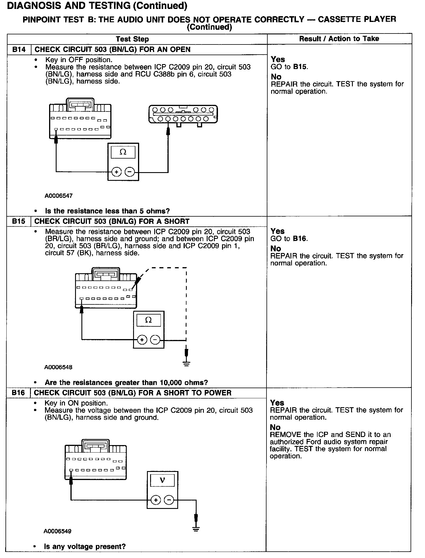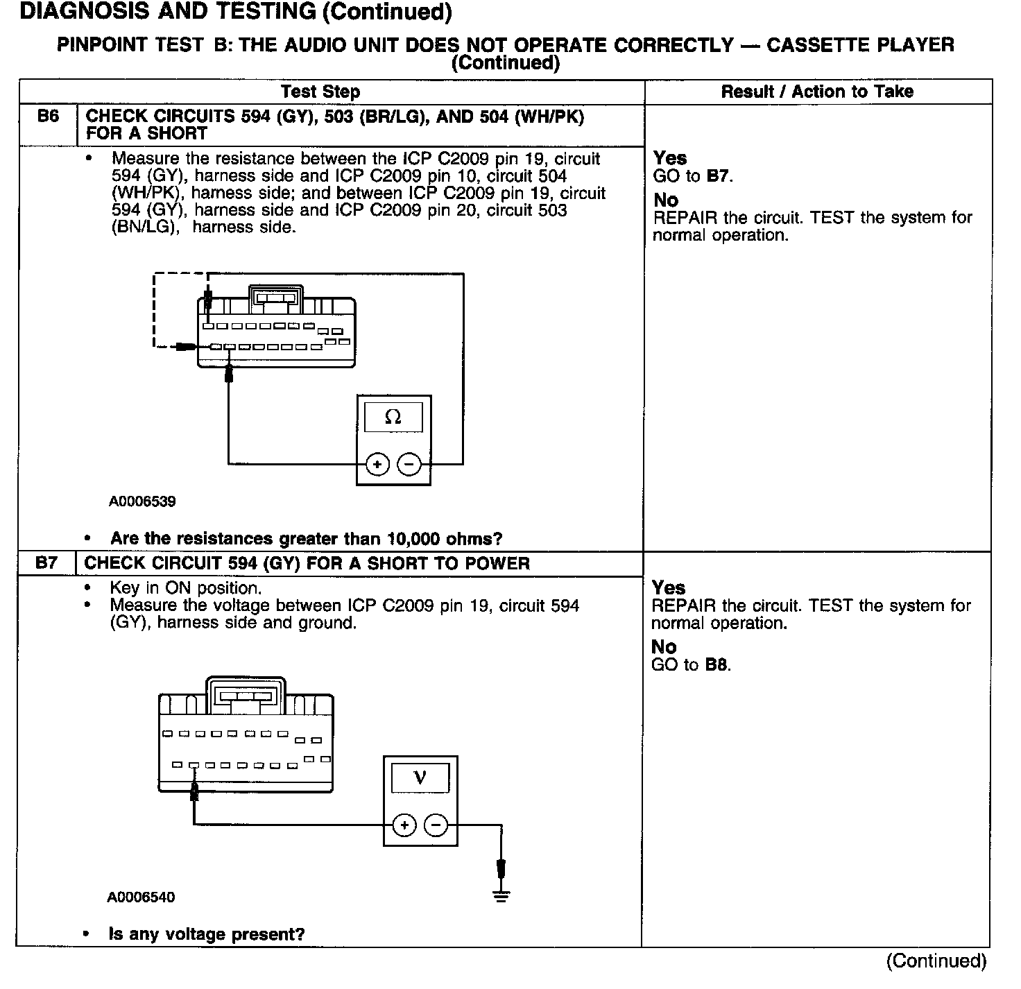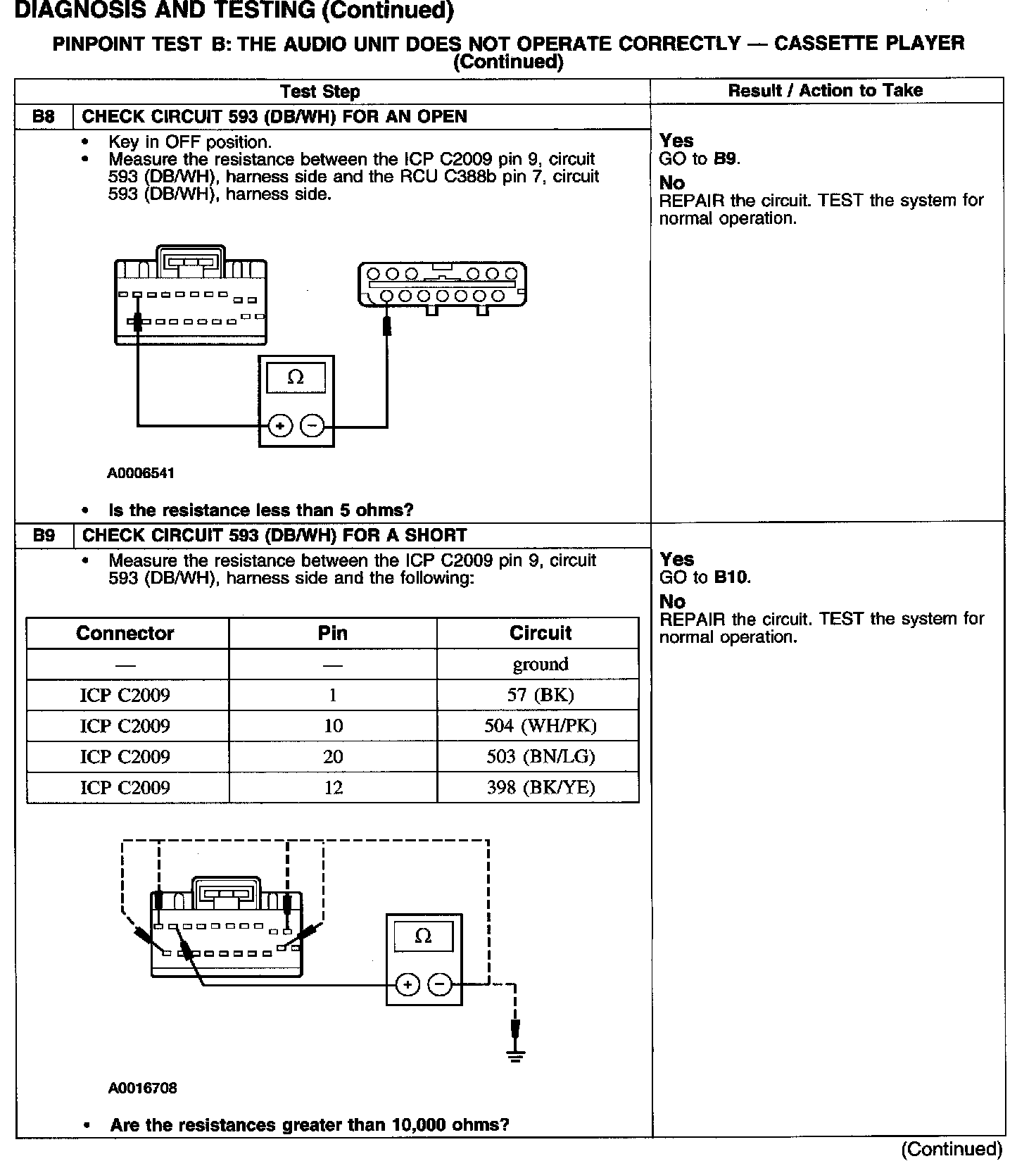 PINPOINT TEST B: THE AUDIO UNIT DOES NOT OPERATE CORRECTLY - CASSETTE PLAYER