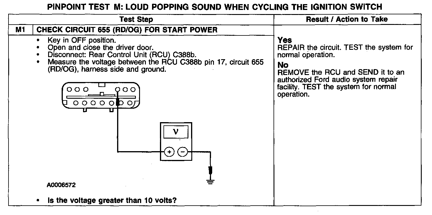 PINPOINT TEST M: LOUD POPPING SOUND WHEN CYCLING THE IGNITION SWITCH