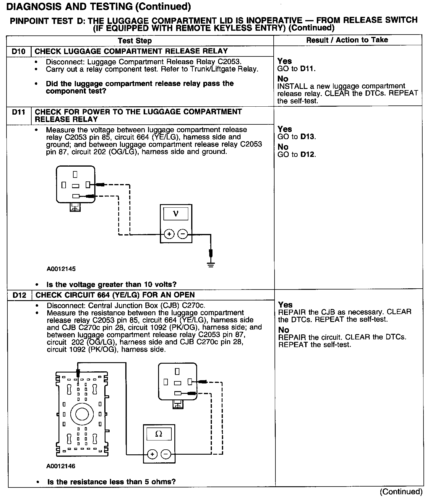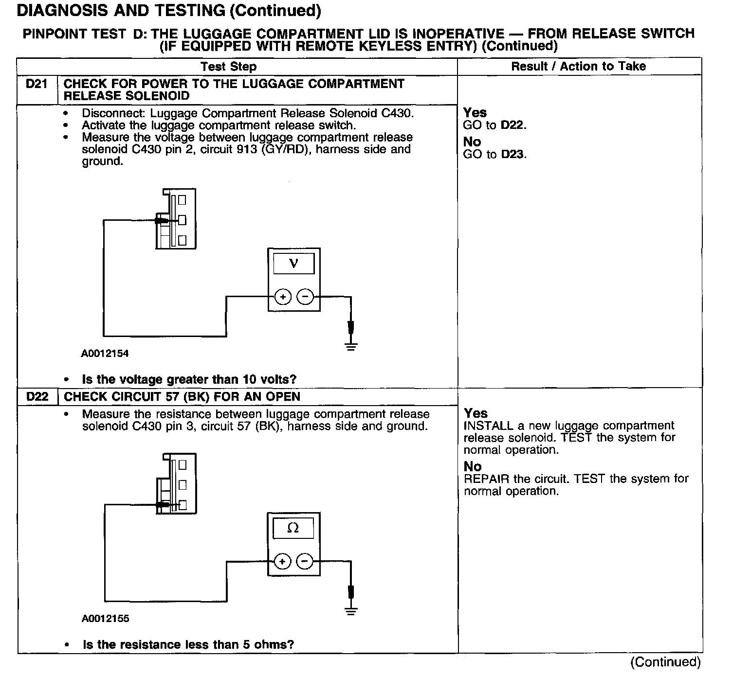 PINPOINT TEST D: THE LUGGAGE COMPARTMENT LID IS INOPERATIVE - FROM RELEASE SWITCH (IF EQUIPPED WITH REMOTE KEYLESS ENTRY)