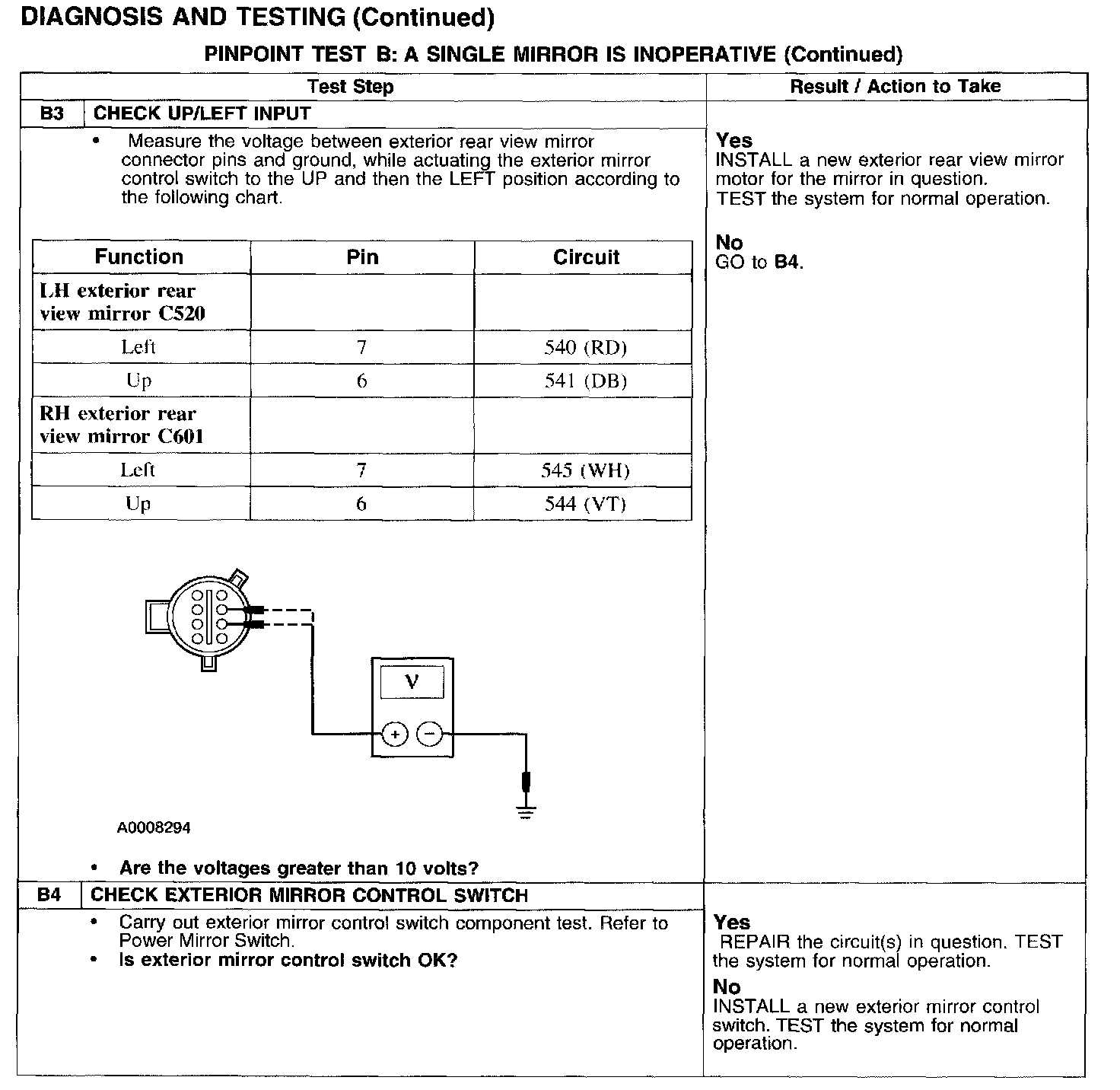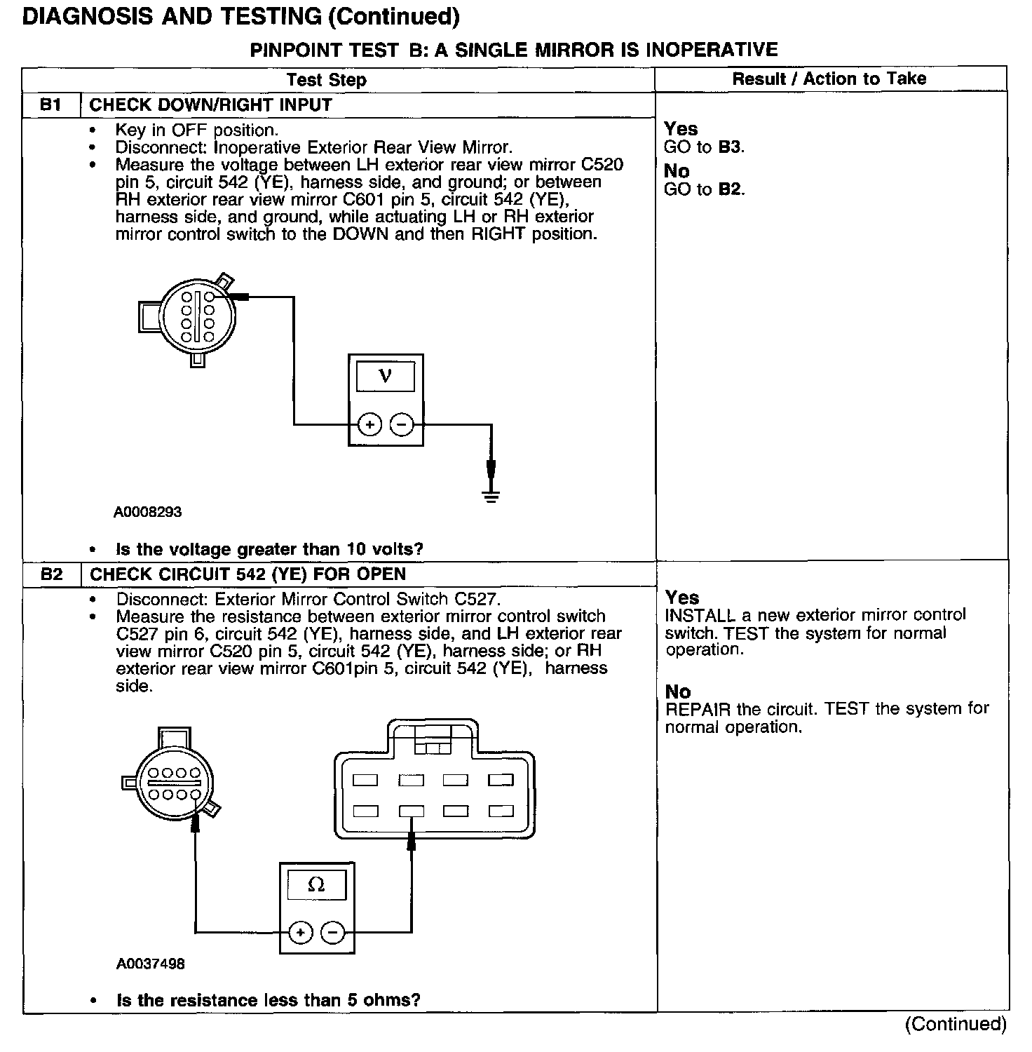 PINPOINT TEST B: A SINGLE MIRROR IS INOPERATIVE