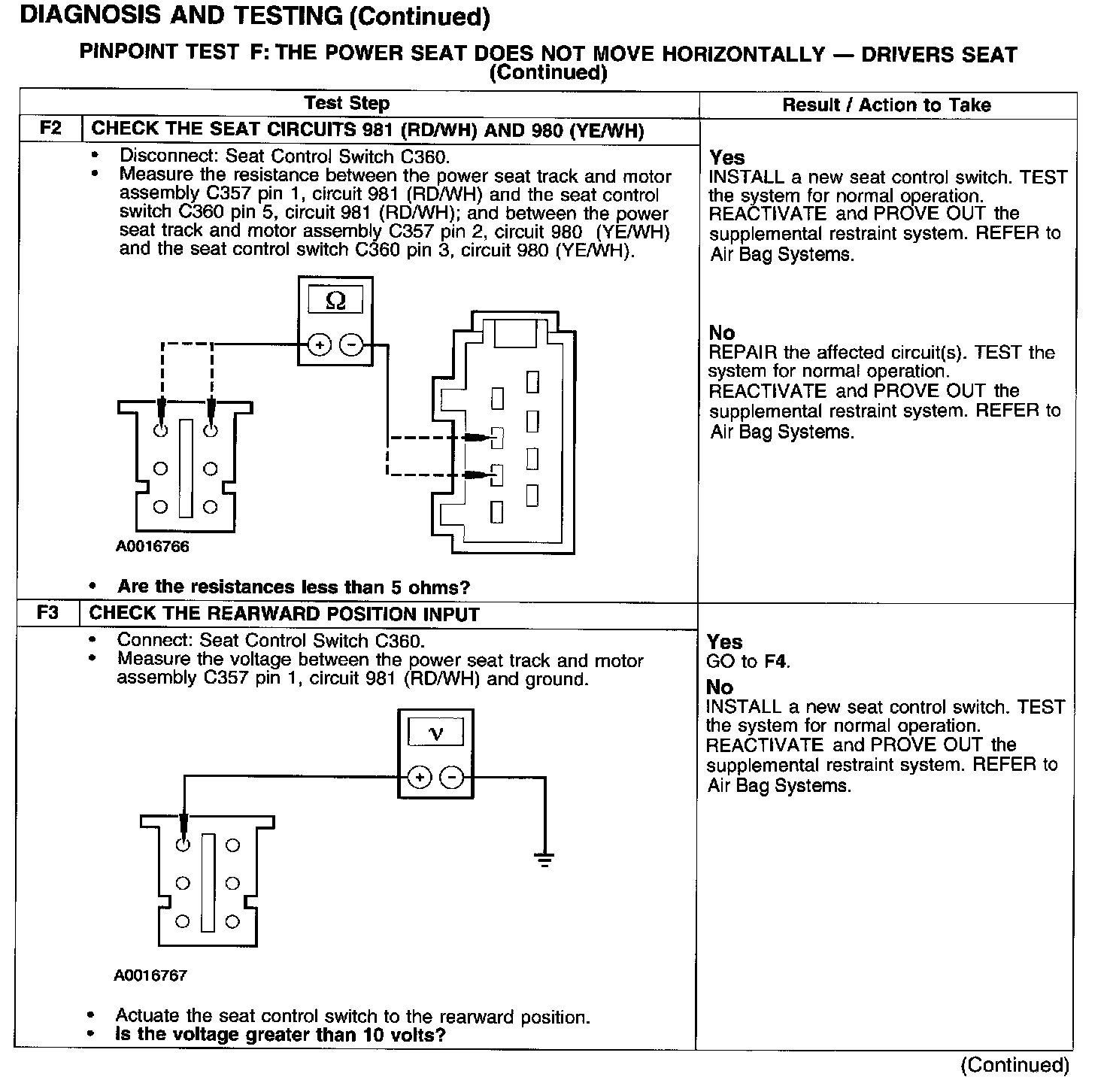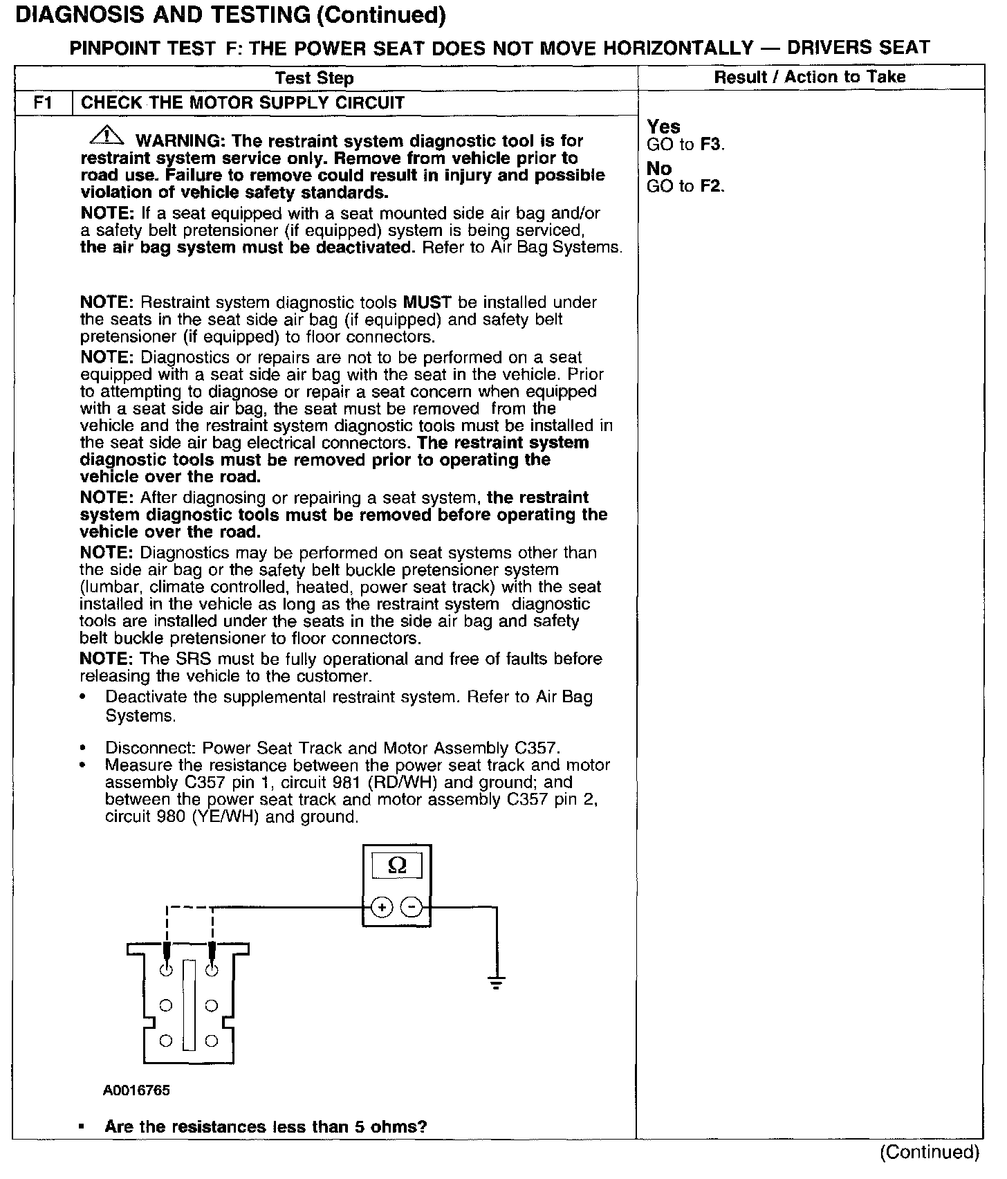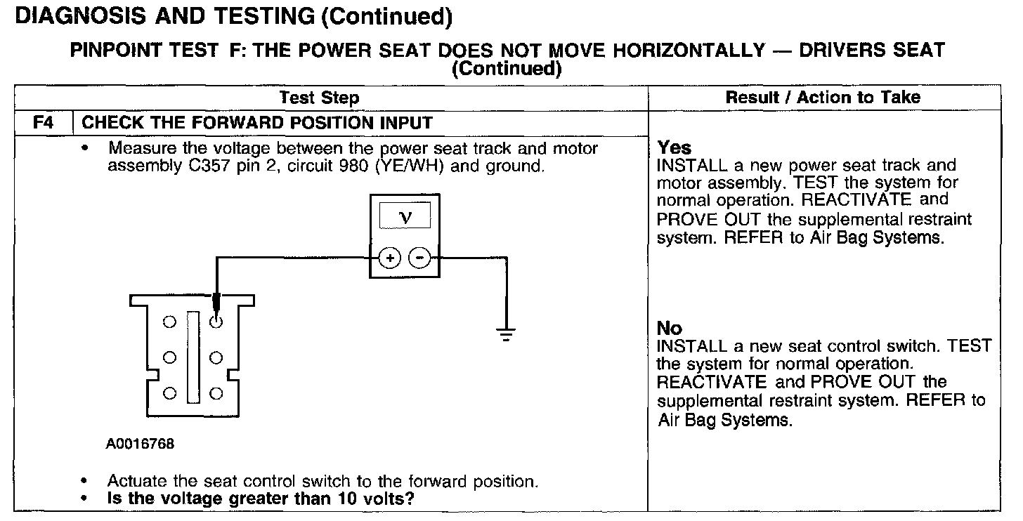 PINPOINT TEST F: THE POWER SEAT DOES NOT MOVE HORIZONTALLY - DRIVERS SEAT