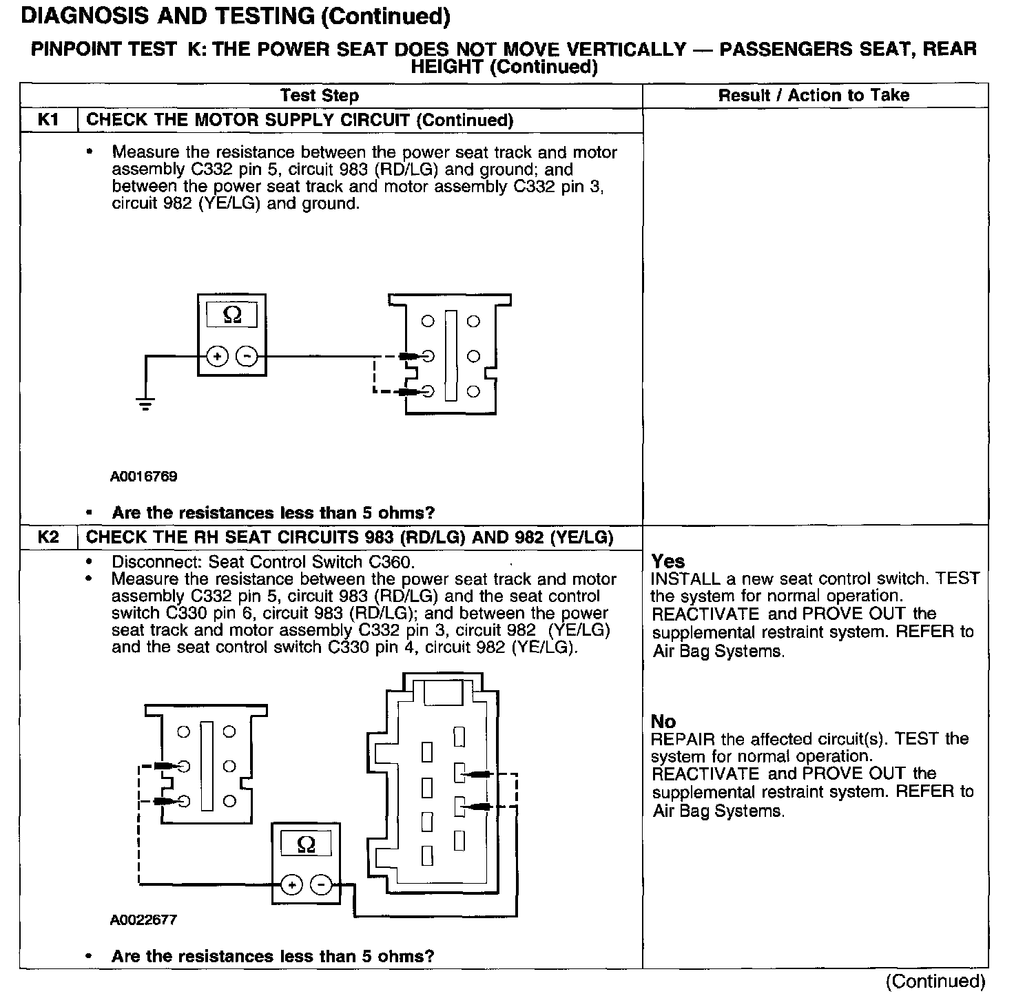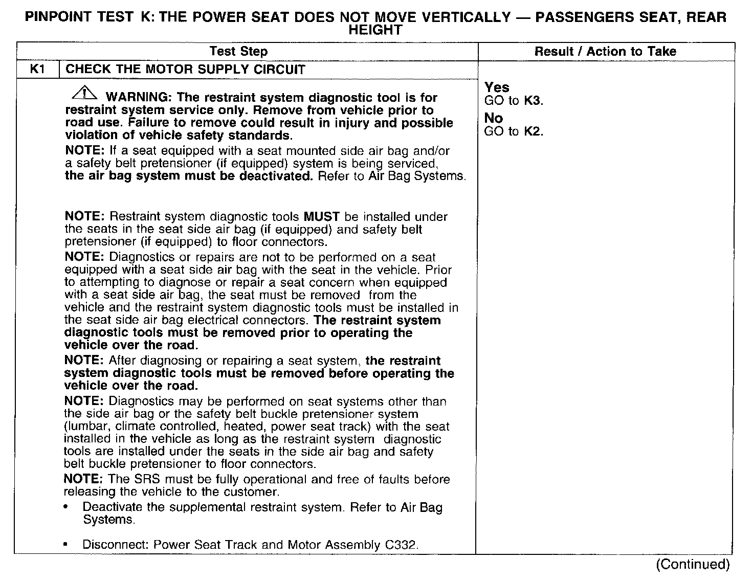 PINPOINT TEST K: THE POWER SEAT DOES NOT MOVE VERTICALLY - PASSENGERS SEAT, REAR HEIGHT