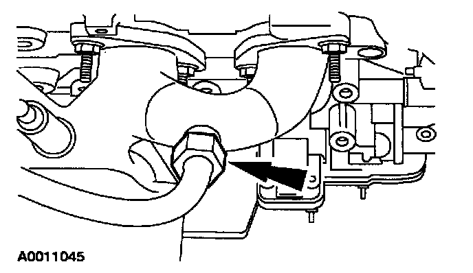 10. Remove the RH exhaust manifold-to-pipe bolts.