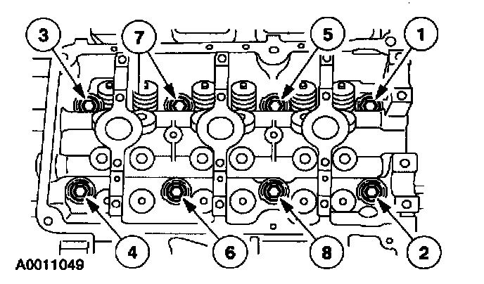 Remove the bolts in the sequence shown and remove the cylinder head.