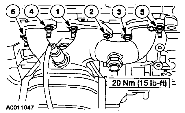 3. Position a new gasket and install the exhaust manifold nuts in the sequence shown.