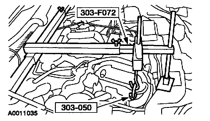 7. Using the special tools, raise the engine to gain clearance necessary to remove the mount.