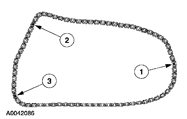 1 Mark any link to use as the crankshaft timing mark.