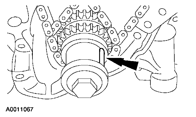 - Align the marks on the timing chain with the marks on the camshaft and crankshaft sprockets.