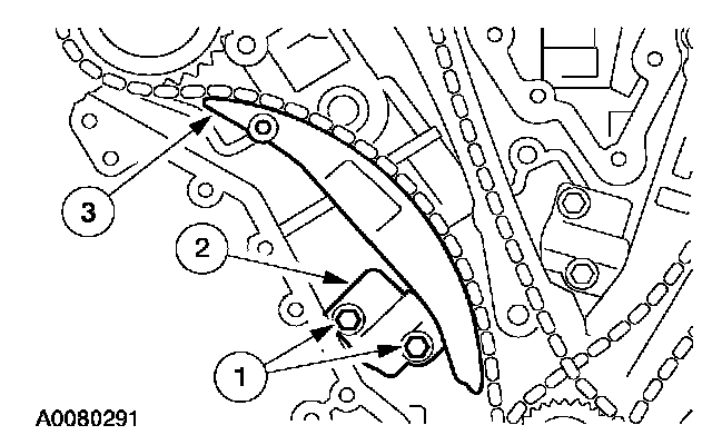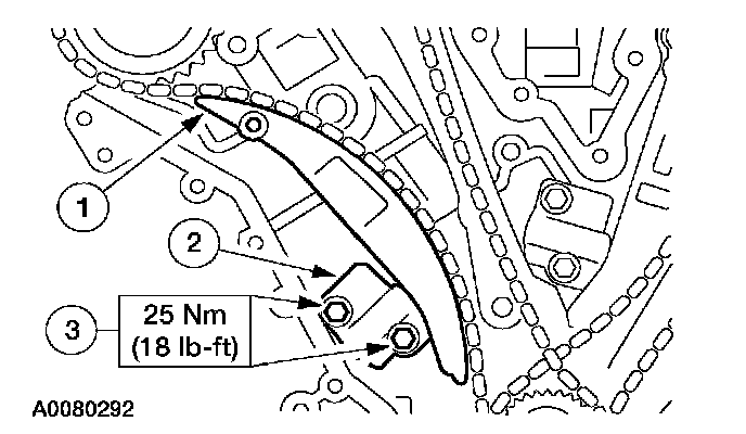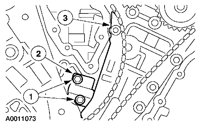 7. Position the LH timing chain and guide and install the bolts.