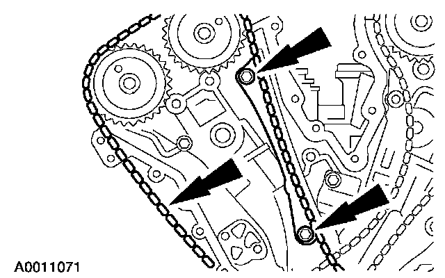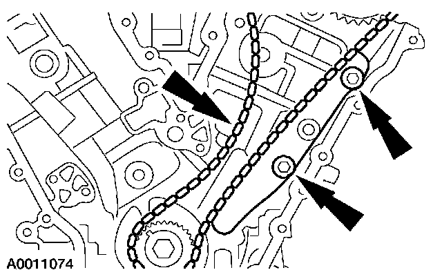 11. Position the RH timing chain and chain guide and install the bolts.