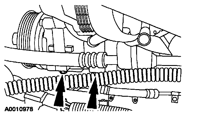 18. Install the tie strap to the power steering hose.