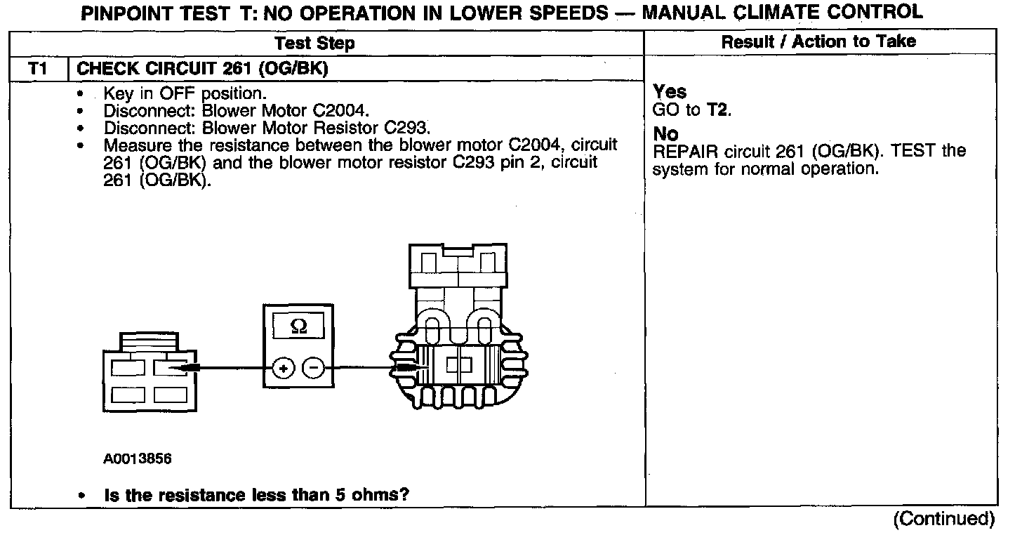 Test T: No Operation In Lower Speeds - Manual Climate Control
