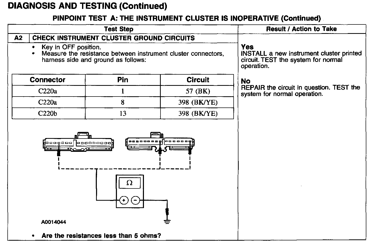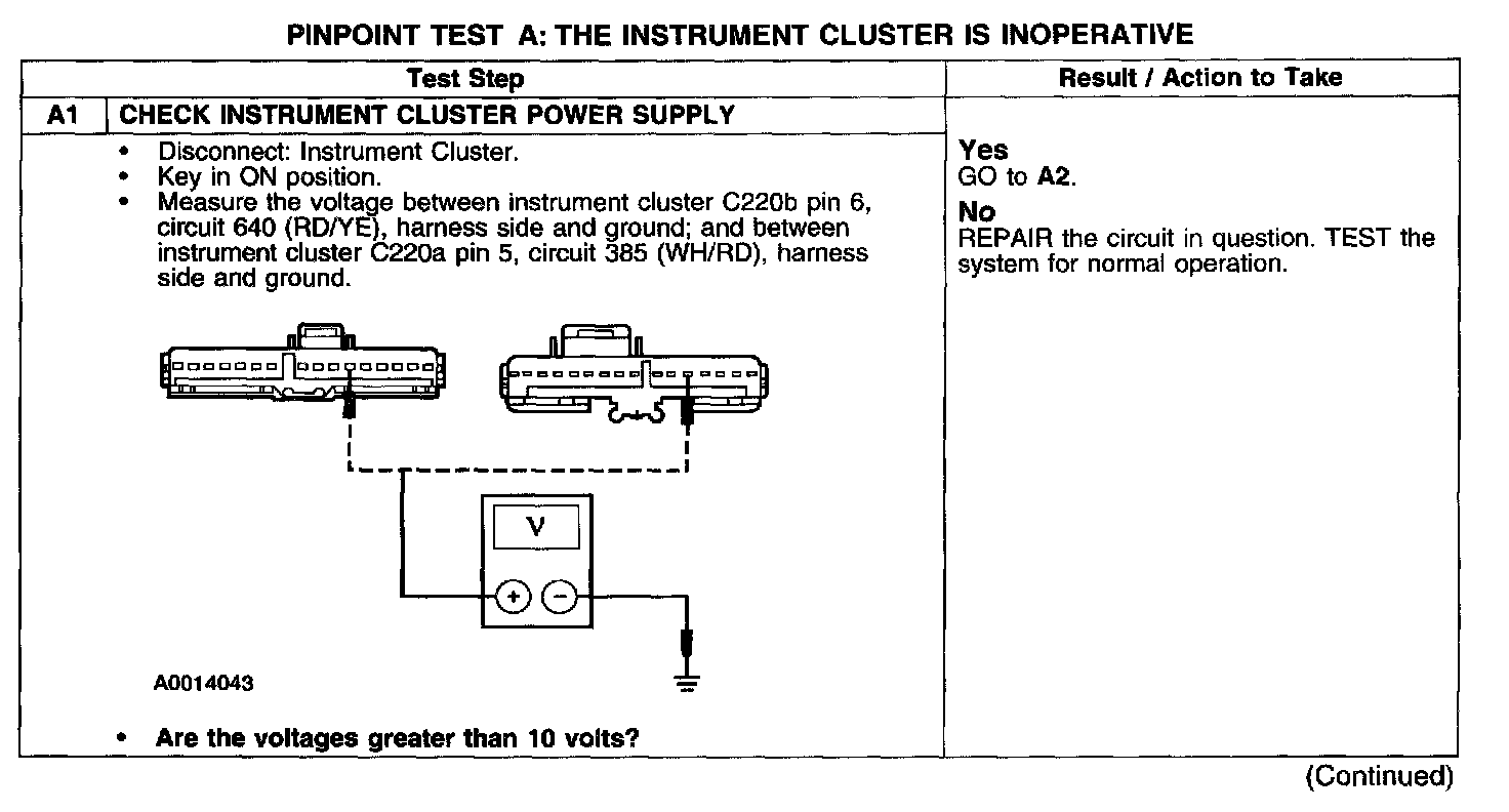 PINPOINT TEST A: THE INSTRUMENT CLUSTER IS INOPERATIVE