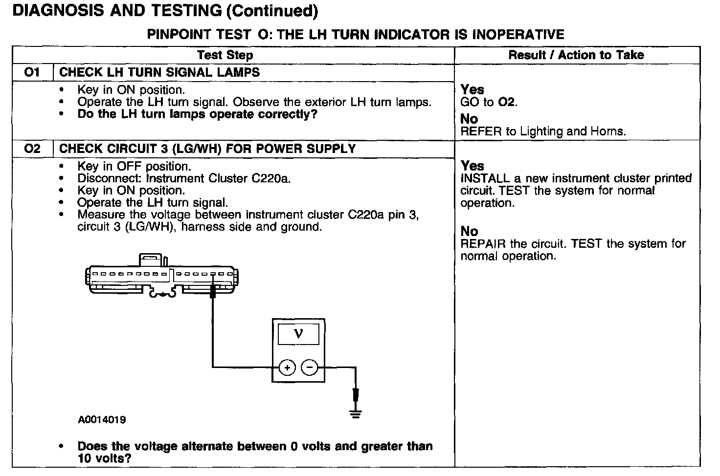 PINPOINT TEST O: THE LH TURN INDICATOR IS INOPERATIVE