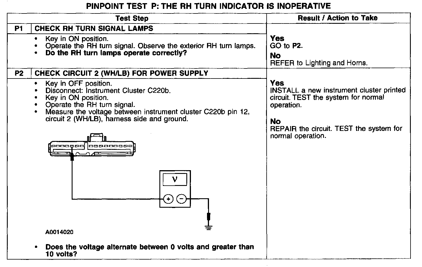 PINPOINT TEST P: THE RH TURN INDICATOR IS INOPERATIVE
