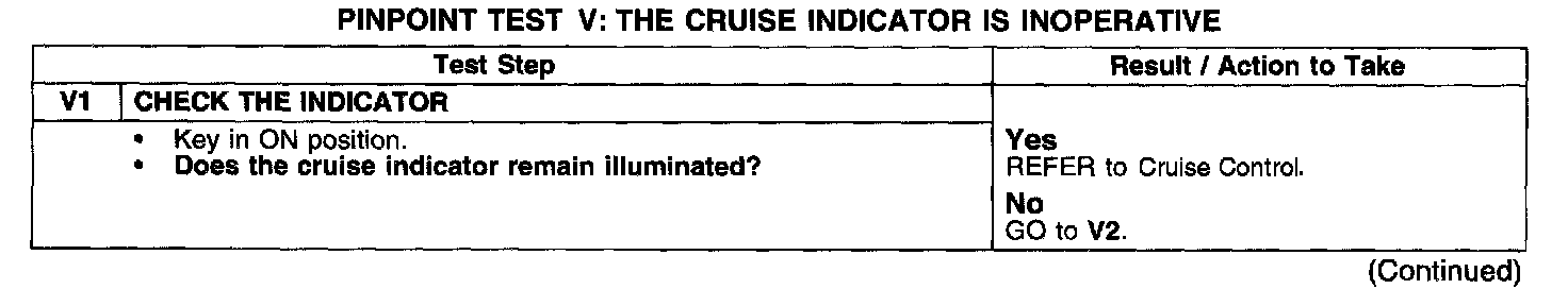 PINPOINT TEST V: THE CRUISE INDICATOR IS INOPERATIVE
