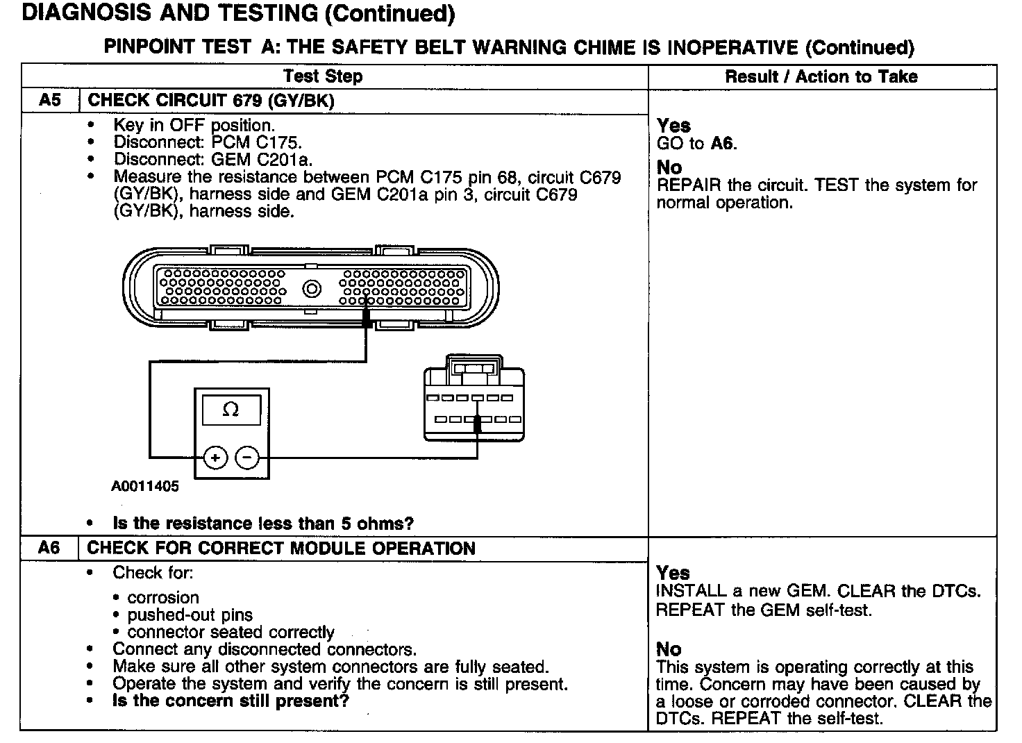 PINPOINT TEST A: THE SAFETY BELT WARNING CHIME IS INOPERATIVE