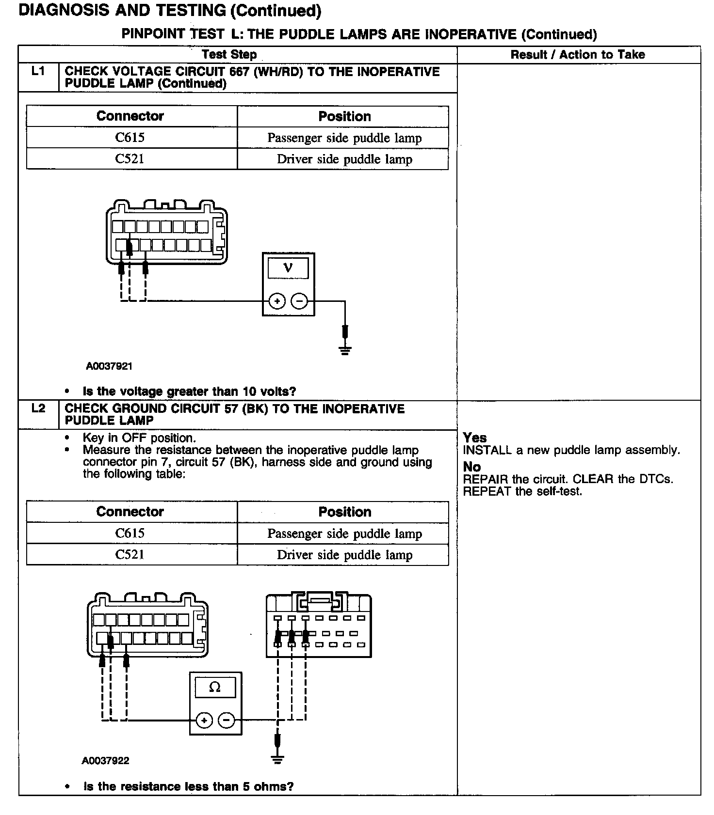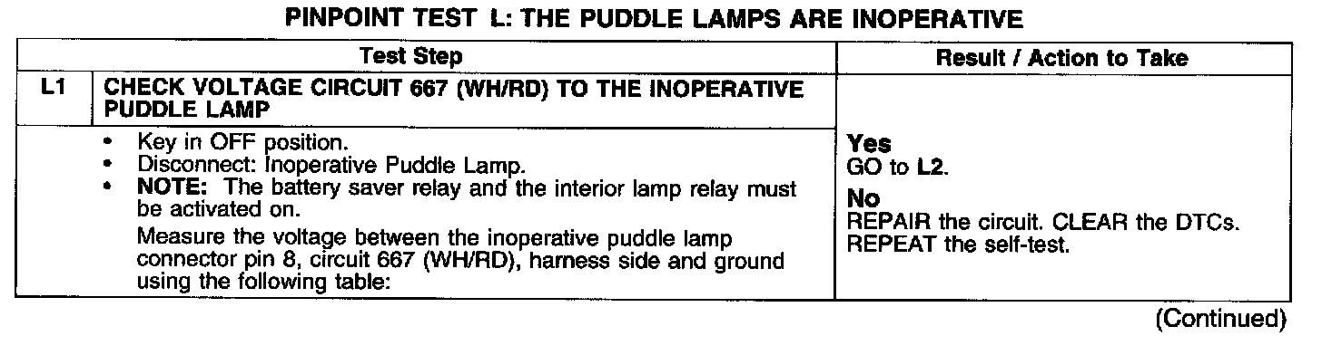 PINPOINT TEST L: THE PUDDLE LAMPS ARE INOPERATIVE