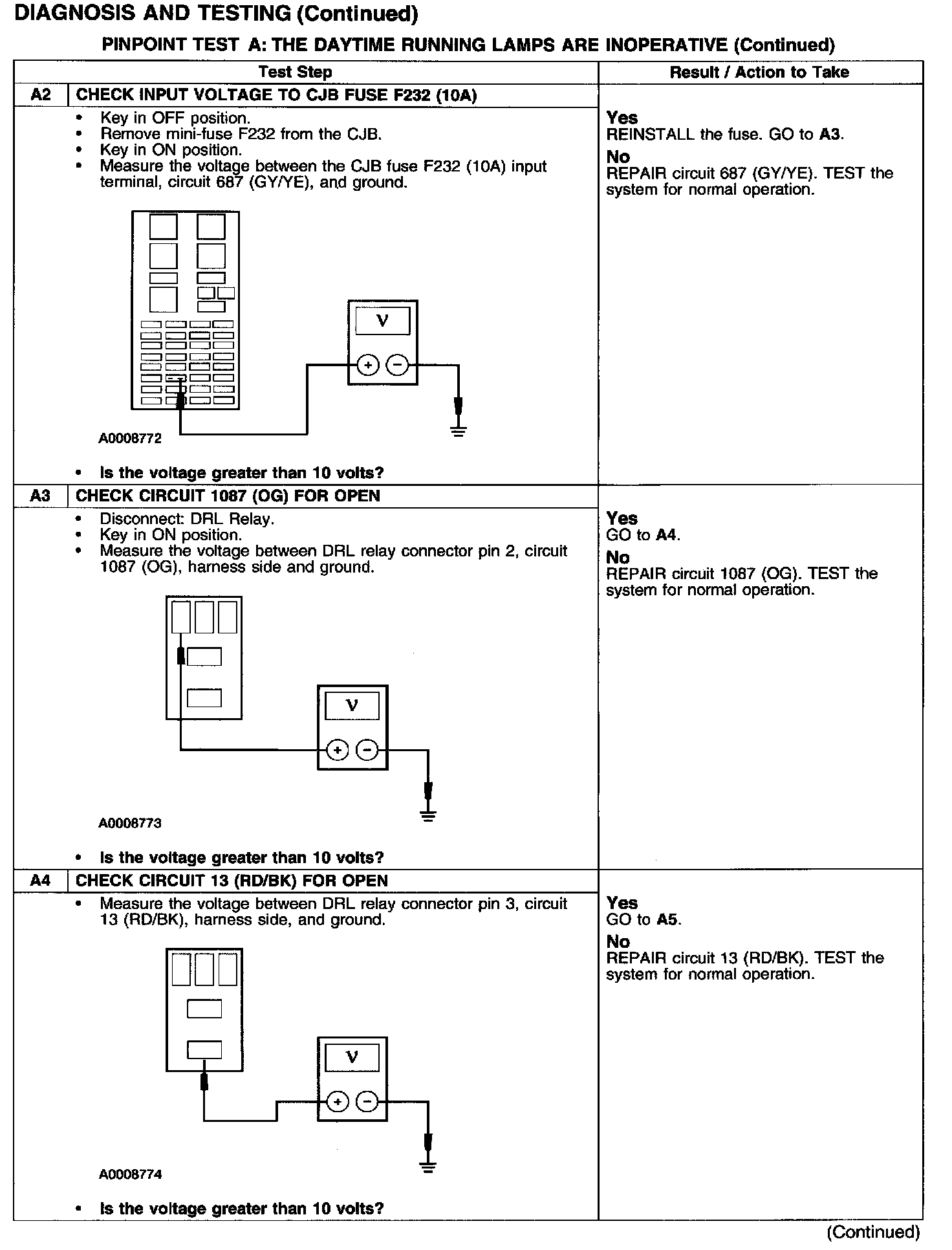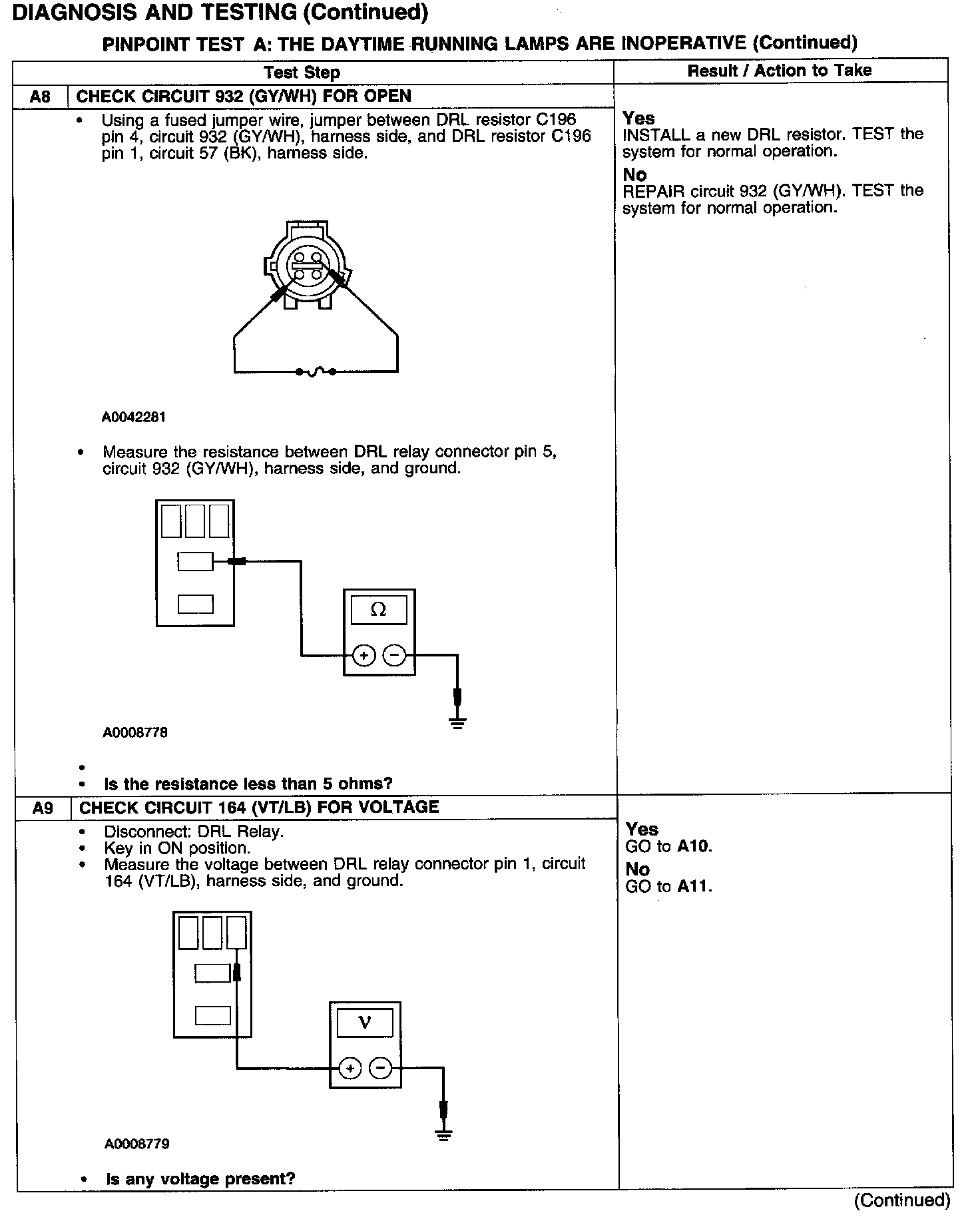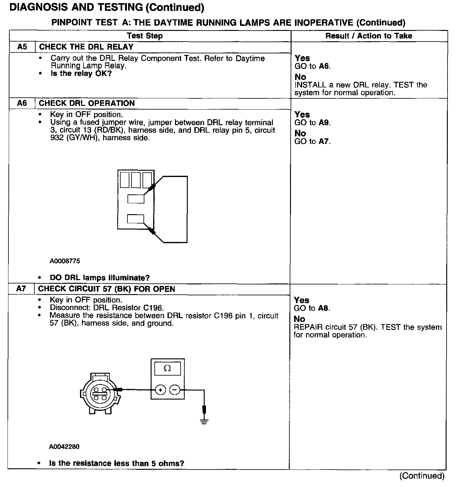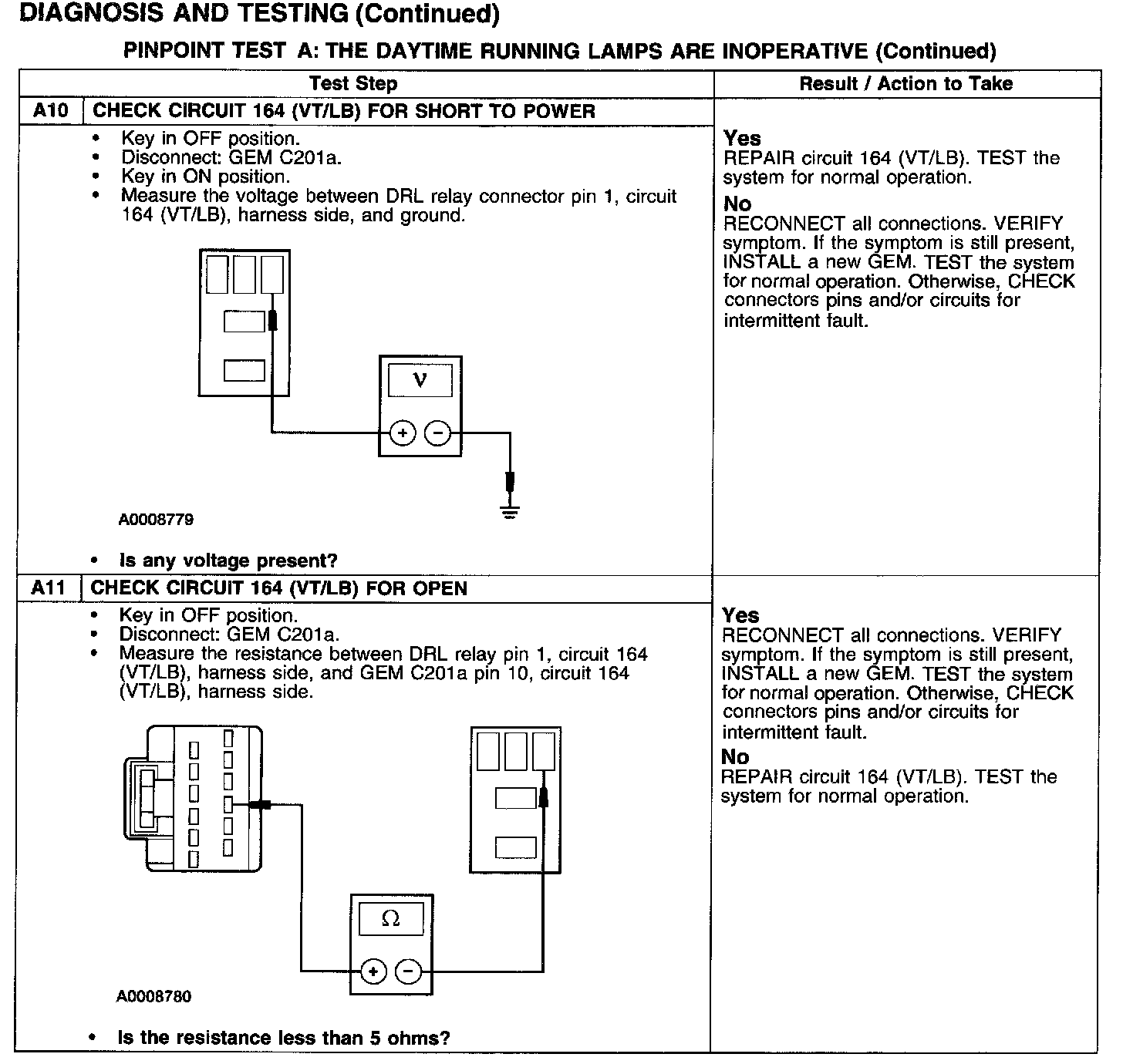 PINPOINT TEST A: THE DAYTIME RUNNING LAMPS ARE INOPERATIVE