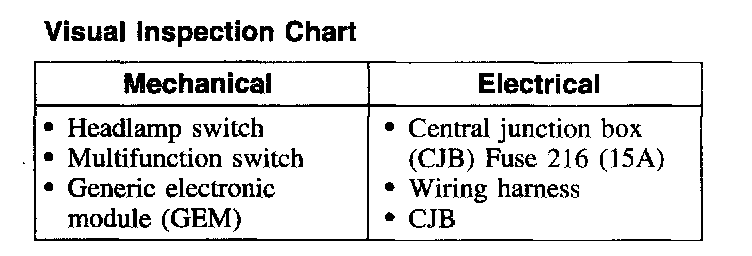 1. Verify the customer concern by operating the autolamps.Visual Inspection Chart: