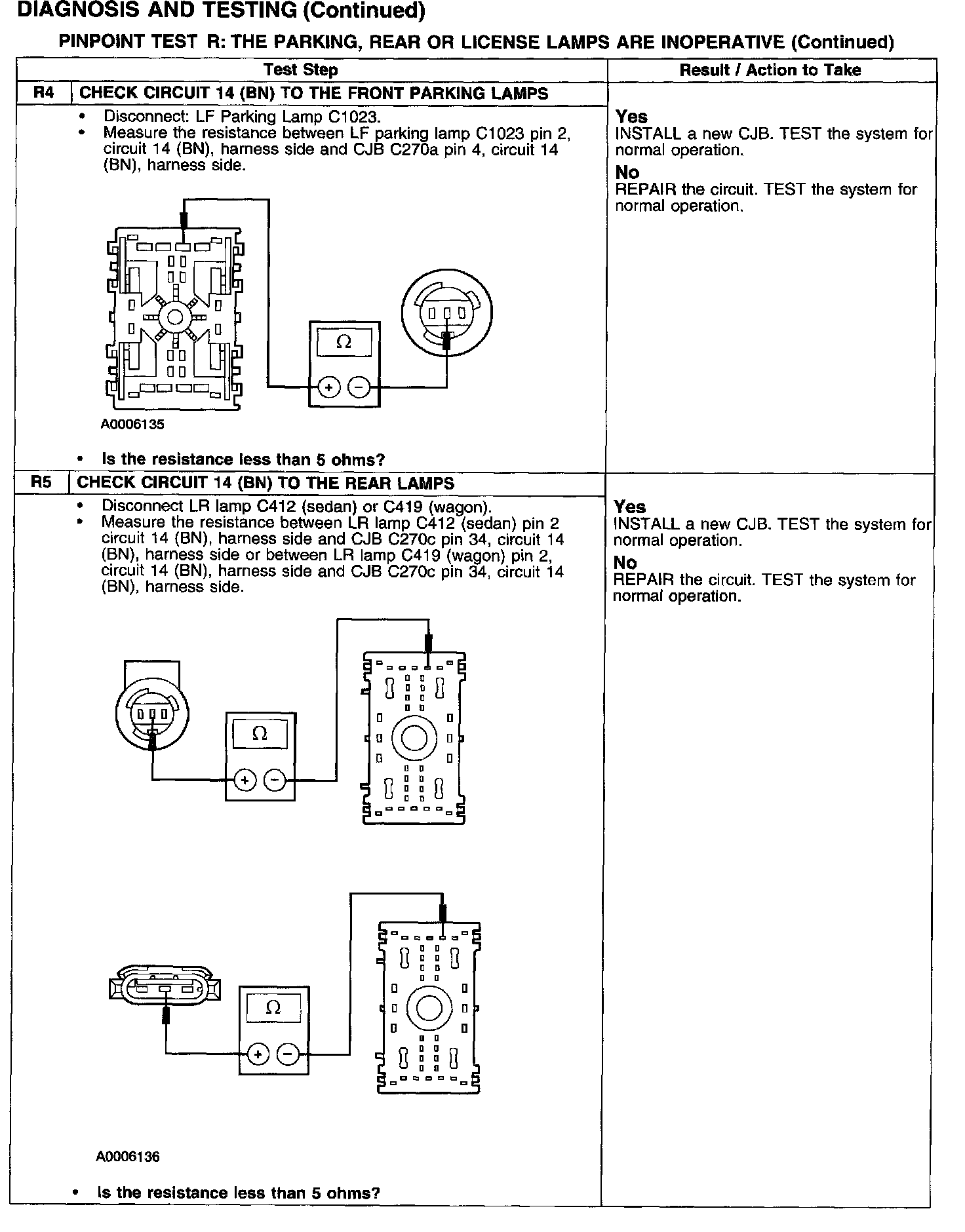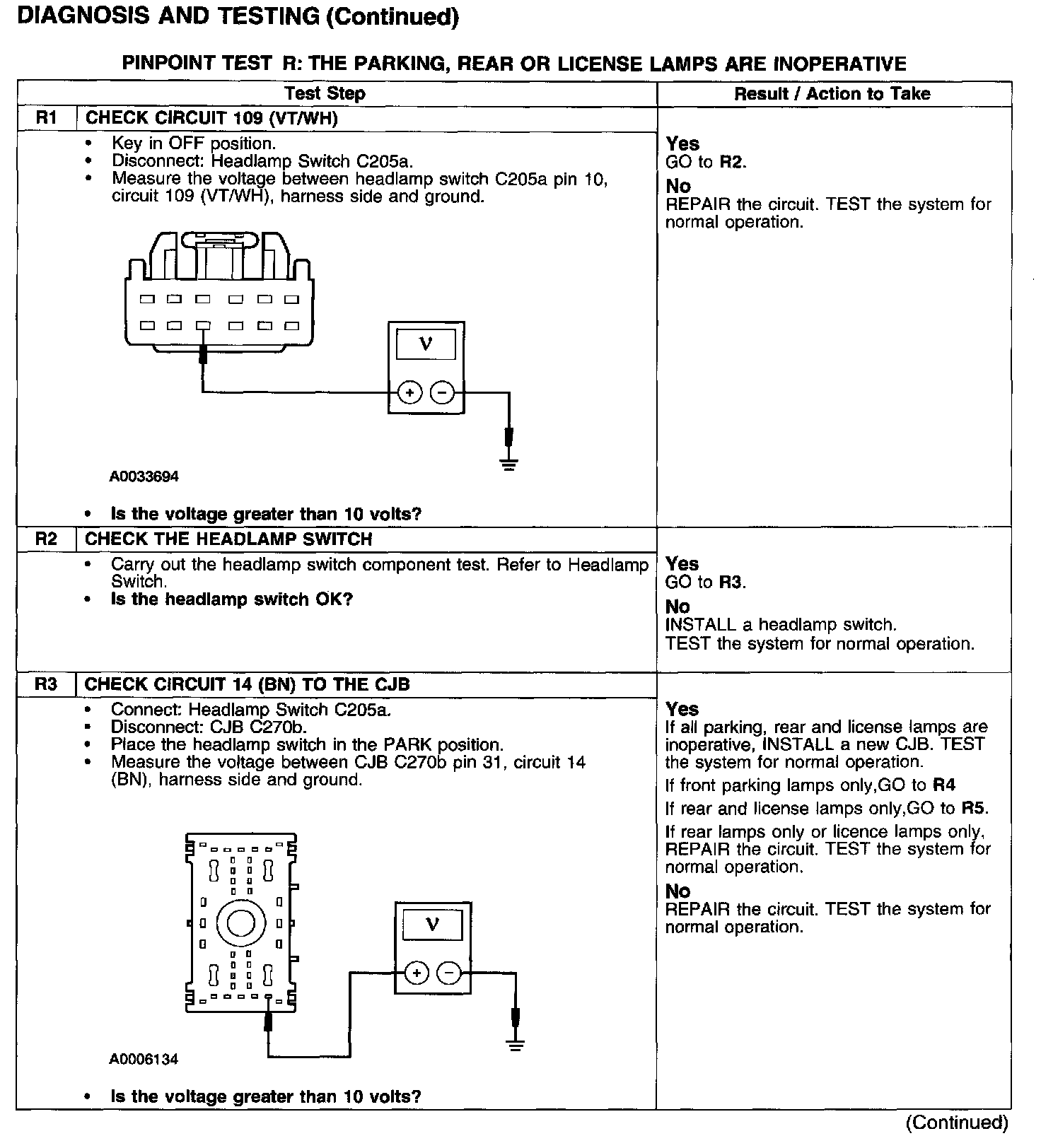 PINPOINT TEST R: THE PARKING, REAR OR LICENSE LAMPS ARE INOPERATIVE