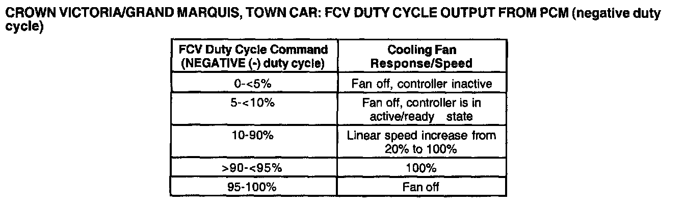 Crown Victoria/Grand Marquis, Town Car: FCV Duty Cycle Output From PCM (negative Duty Cycle):