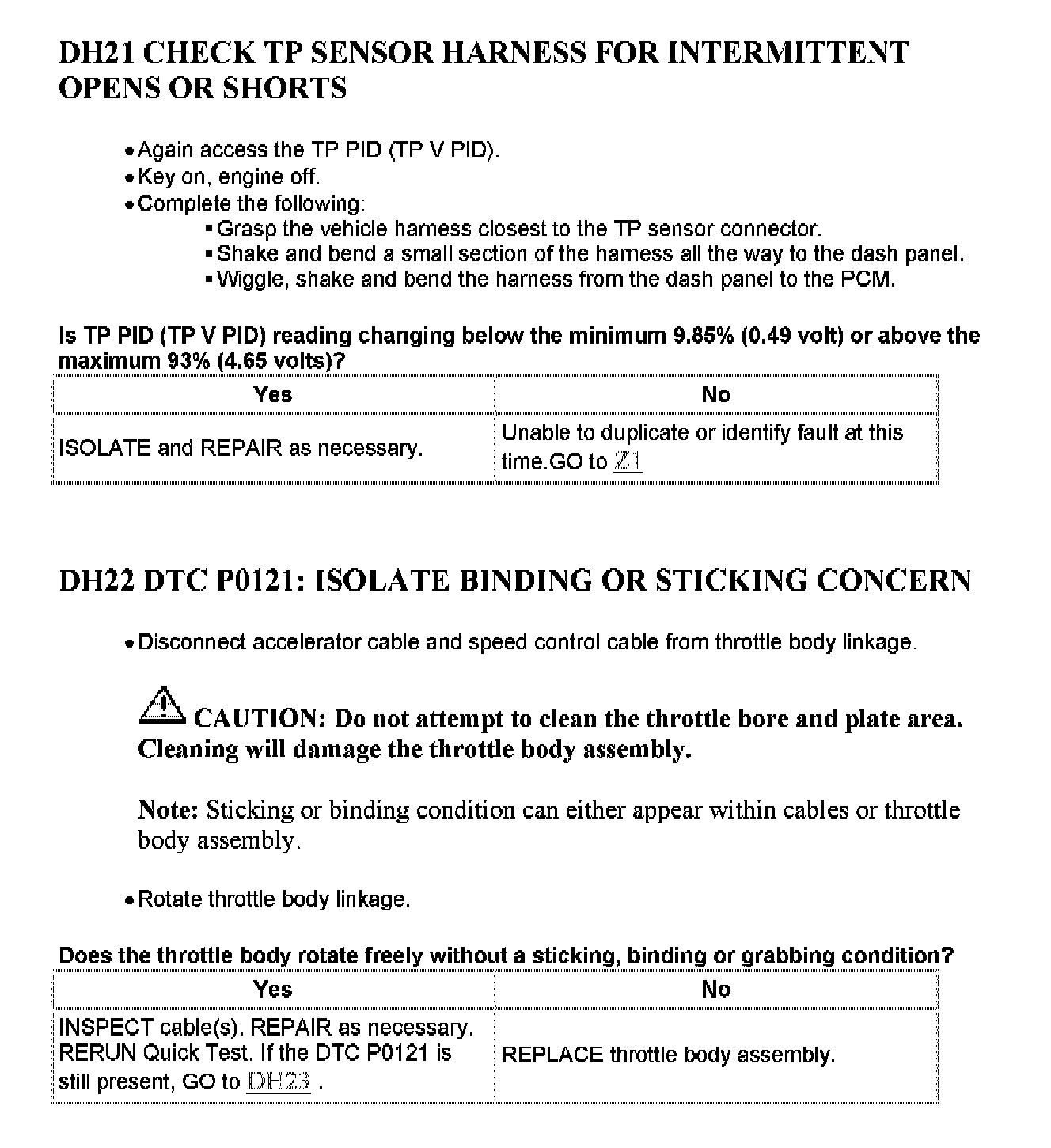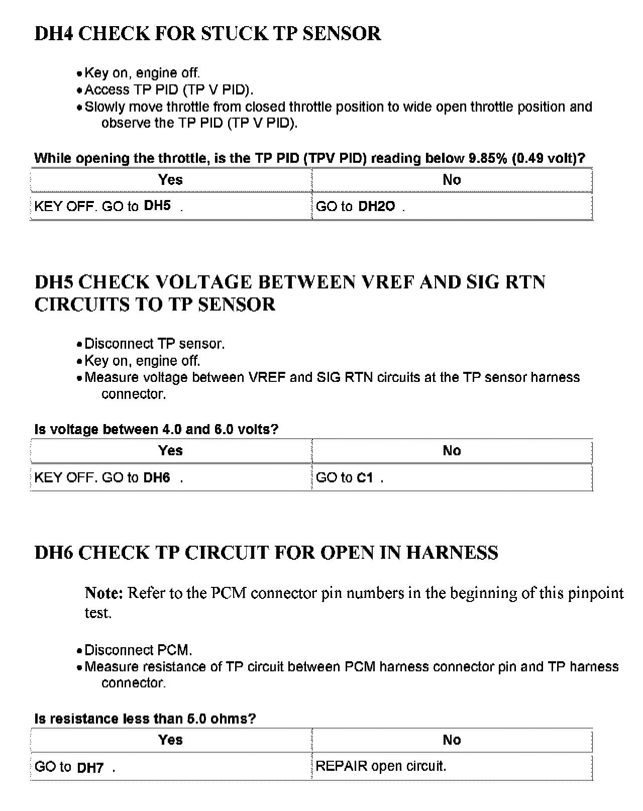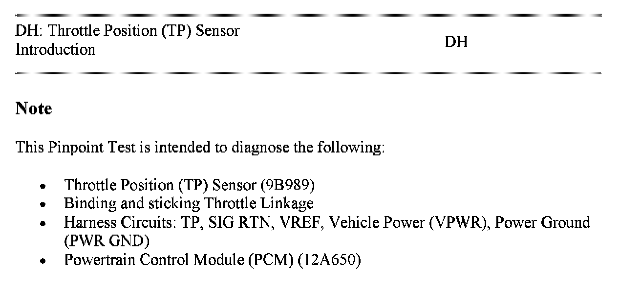 Tests DH: Throttle Position (TP) Sensor
