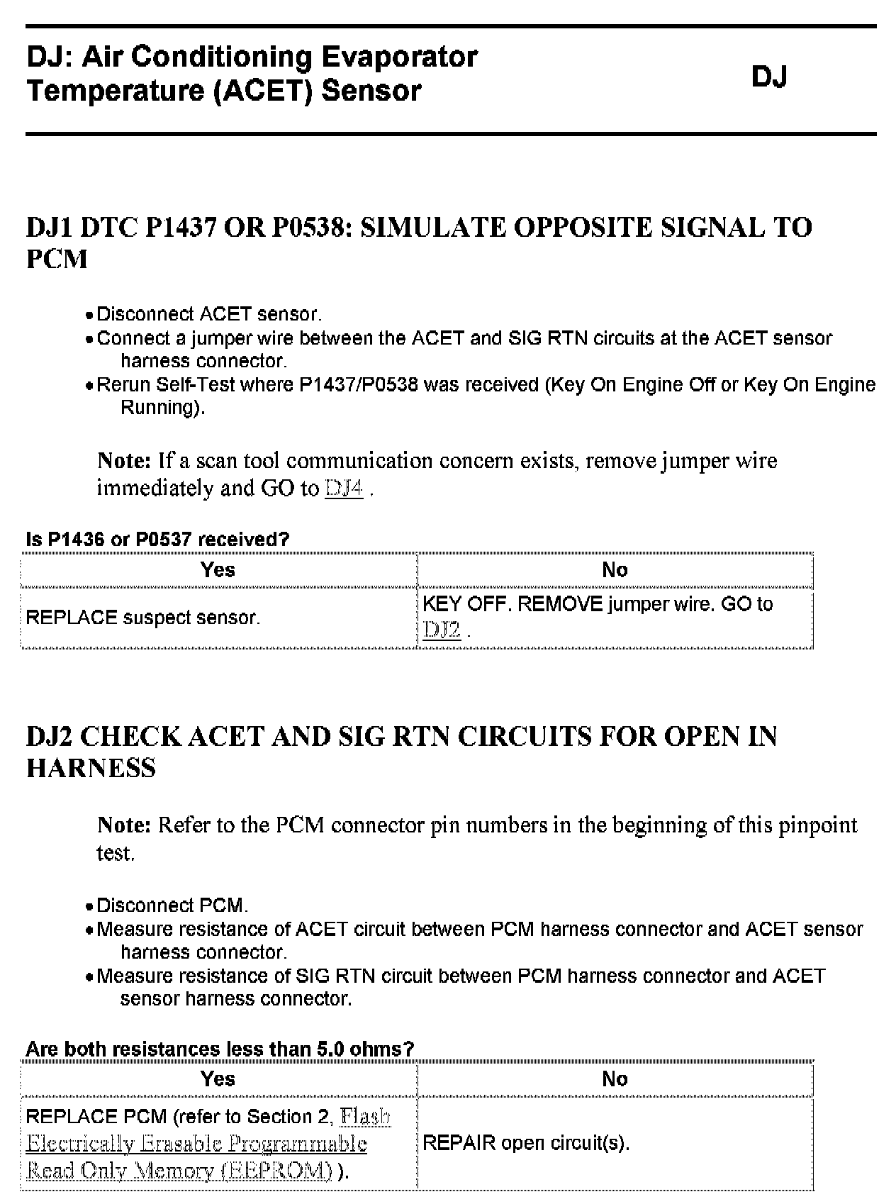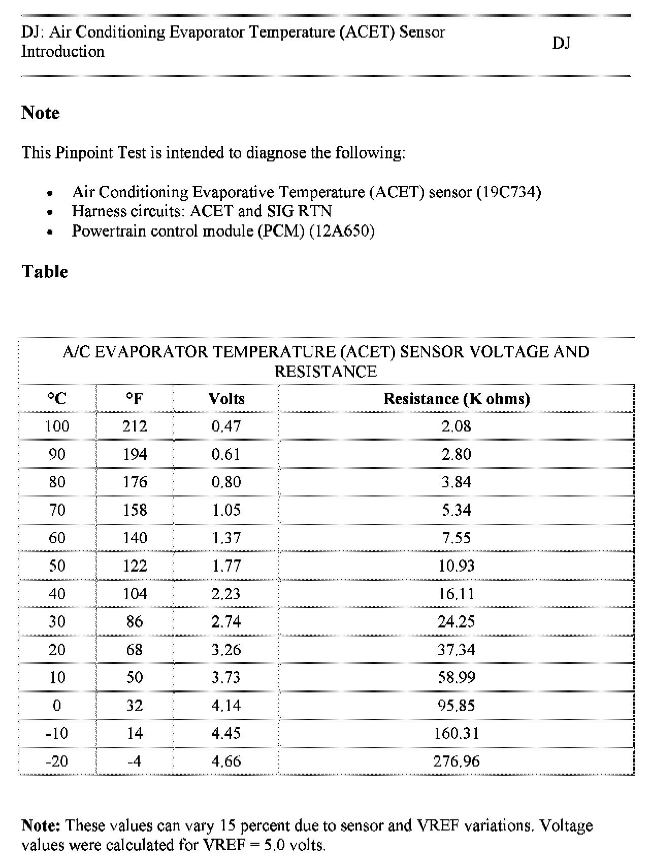 Tests DJ: Air Conditioning Evaporator Temperature (ACET) Sensor