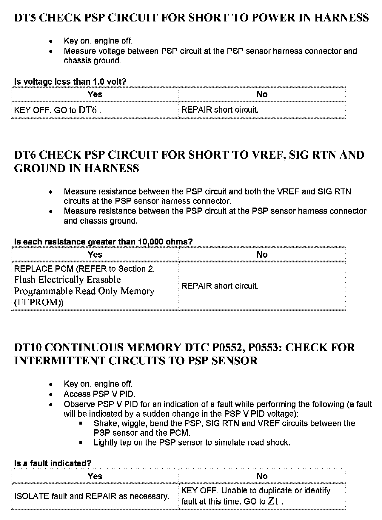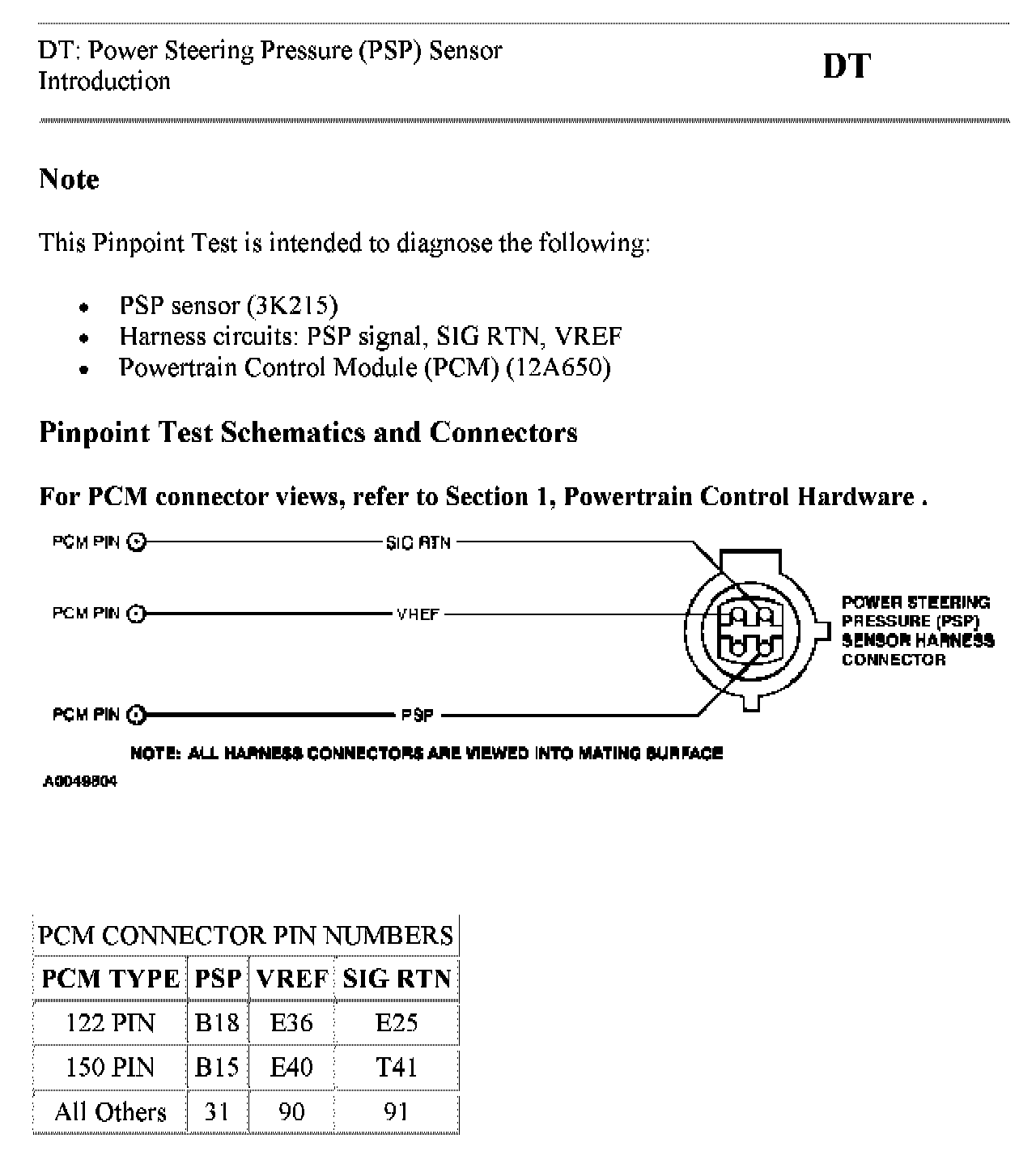 Tests DT: Power Steering Pressure (PSP) Sensor