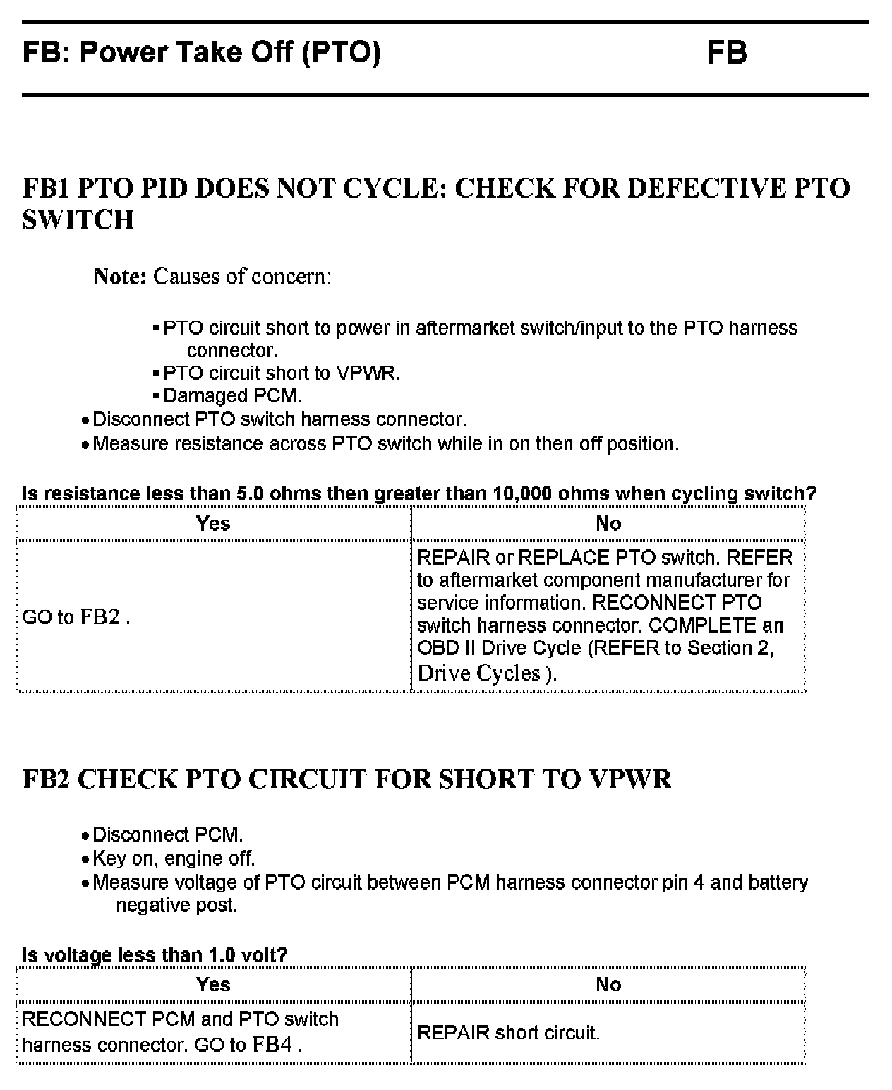 Tests FB: Power Take Off (PTO)