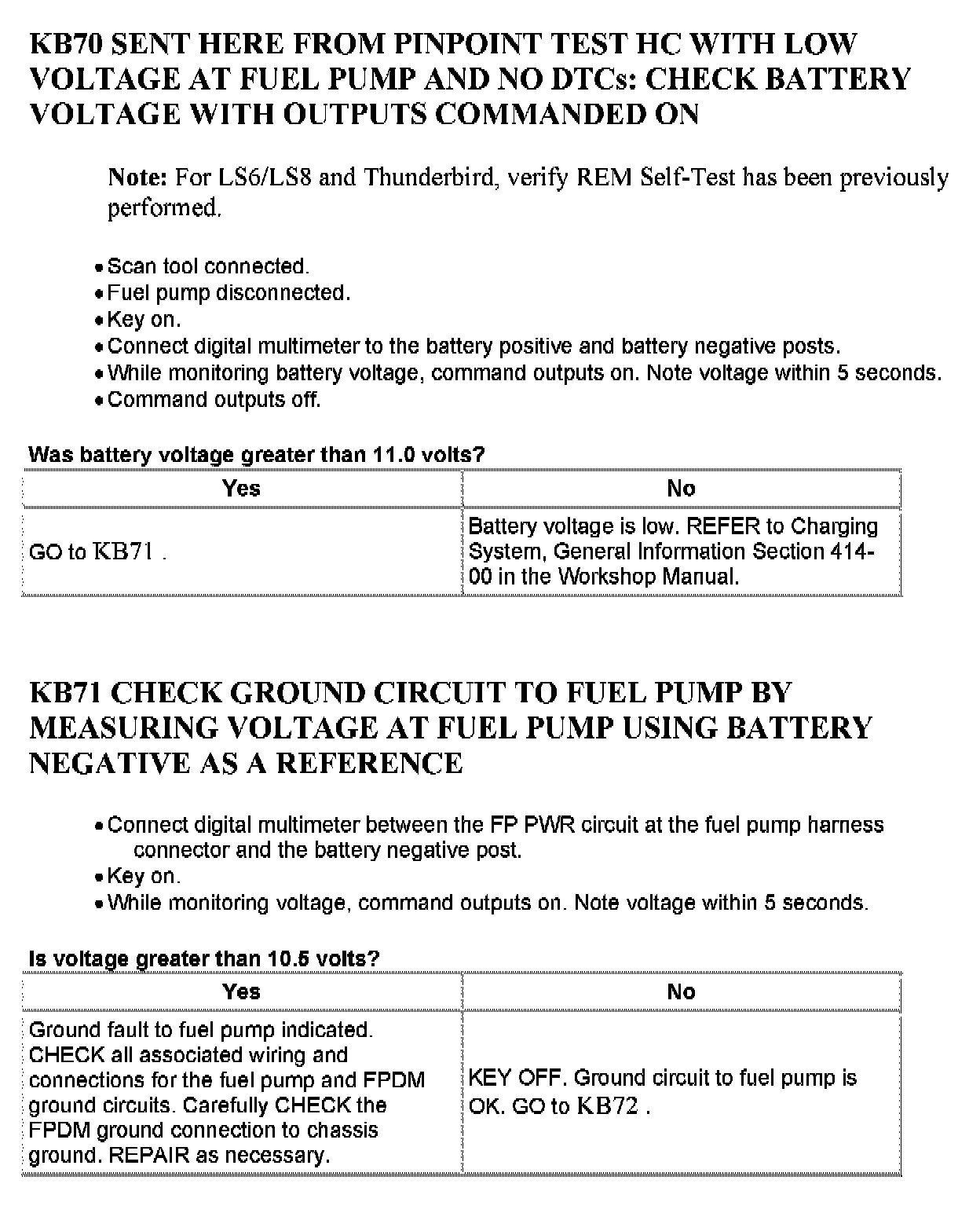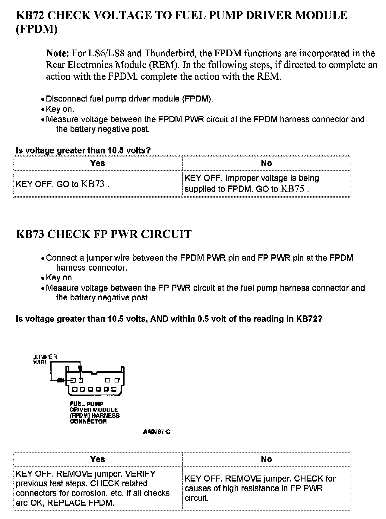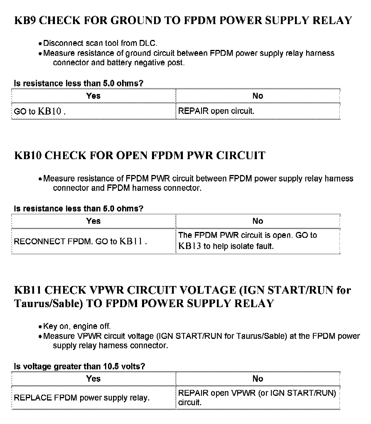 Tests KB: Fuel Pump Driver Module (FPDM)