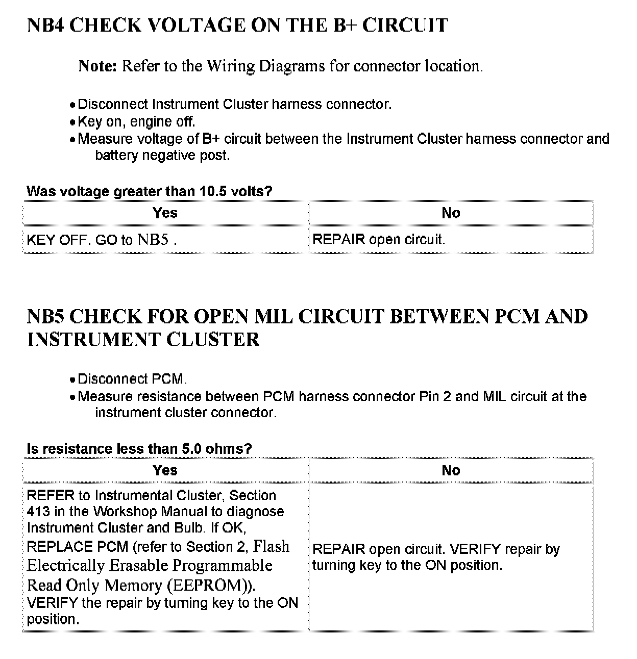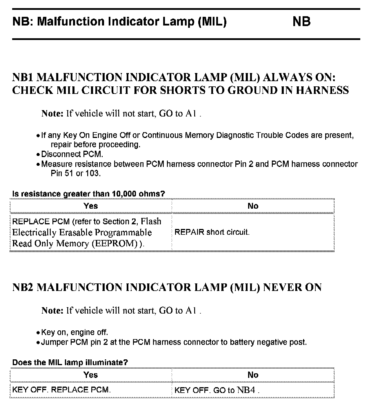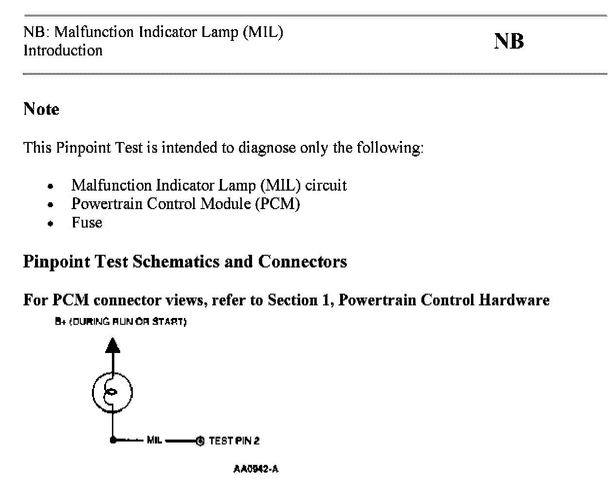 Tests NB: Malfunction Indicator Lamp (MIL)