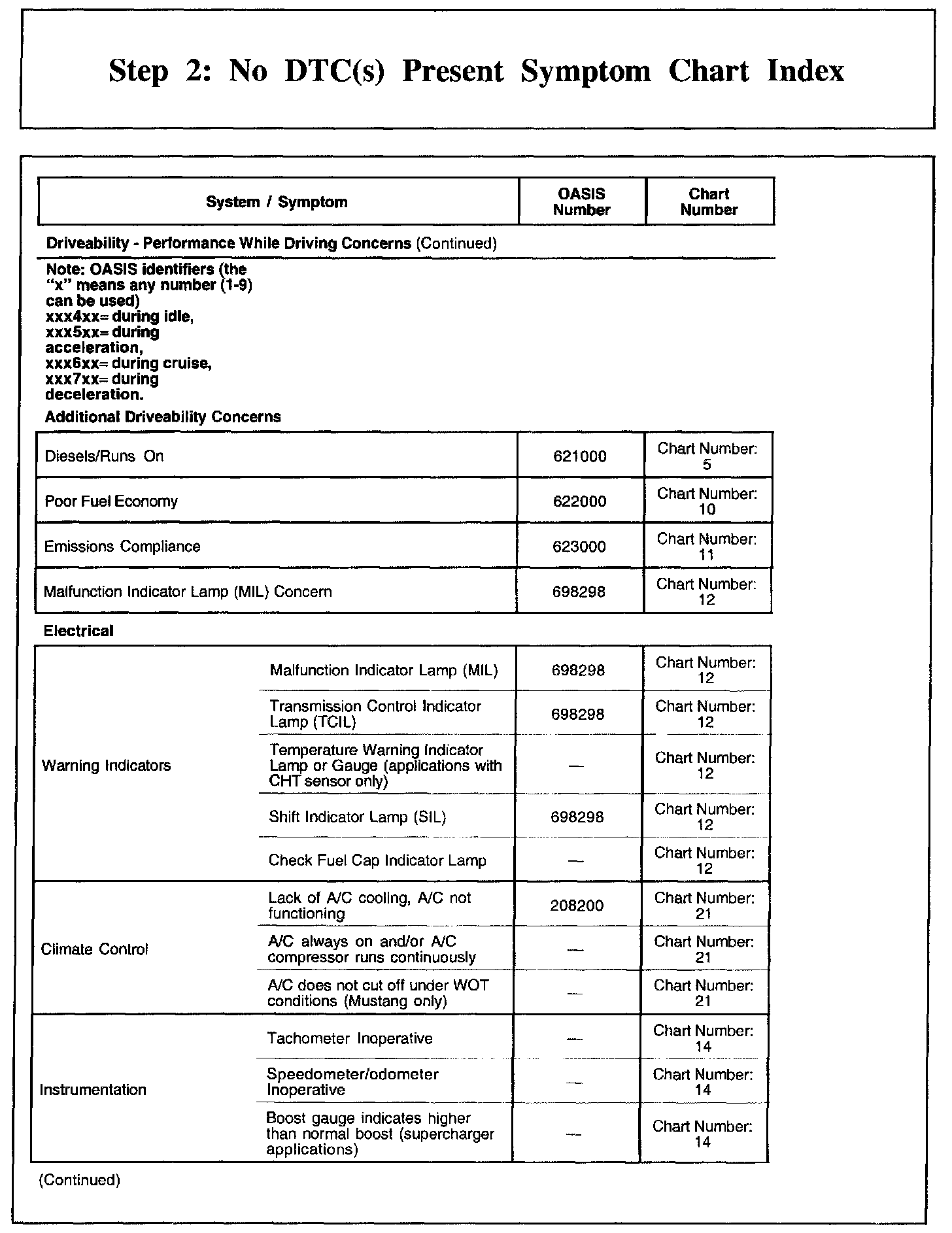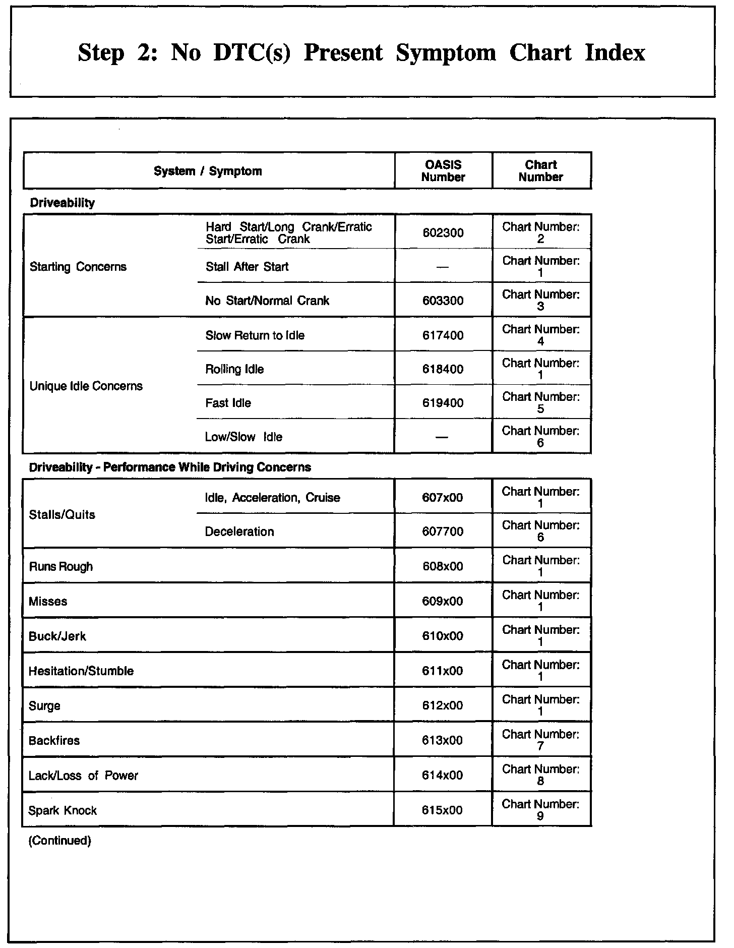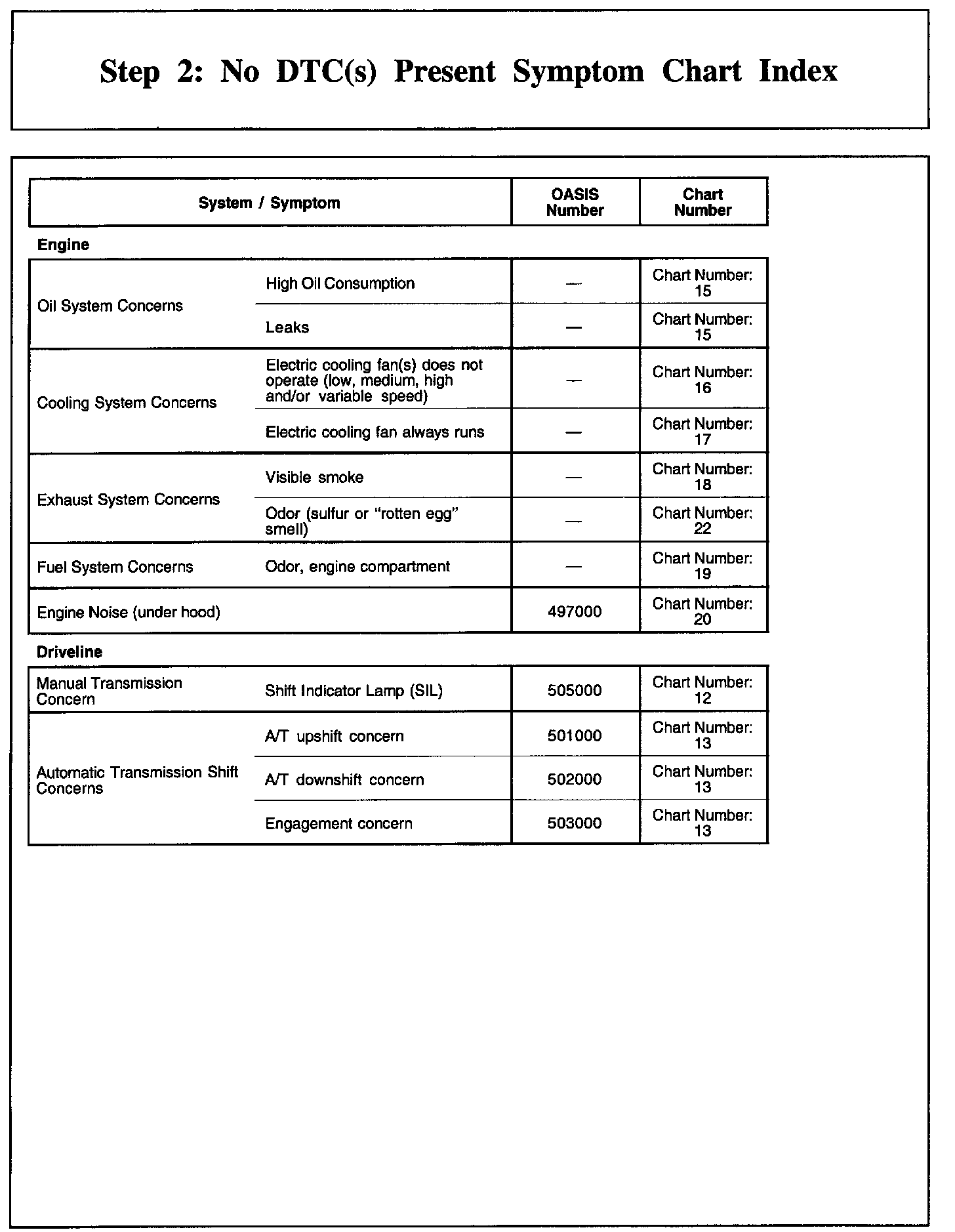 Step 2: No DTC(s) Present Symptom Chart Index