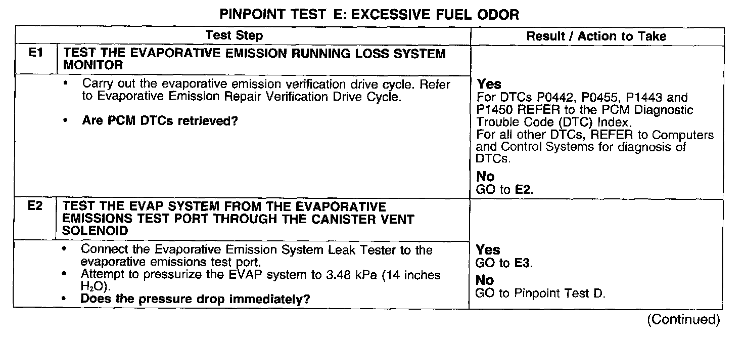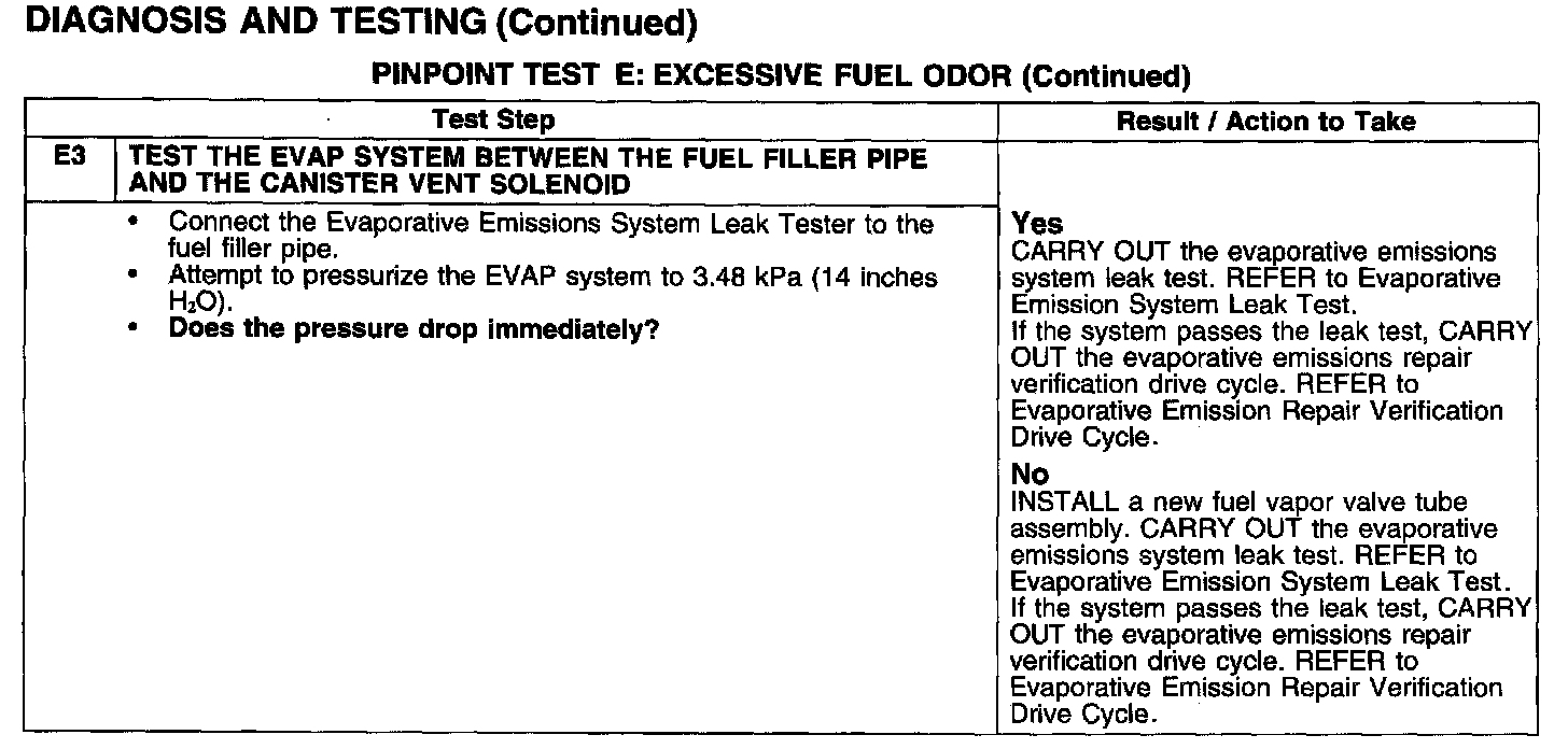 PINPOINT TEST E: EXCESSIVE FUEL ODOR