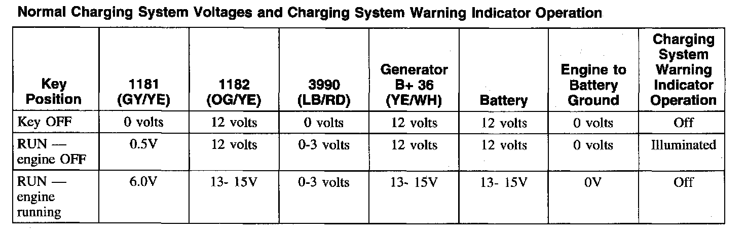 NORMAL CHARGING SYSTEM VOLTAGES CHART
