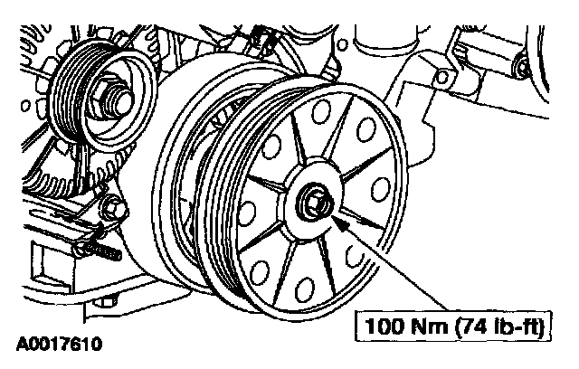 NOTE: The crankshaft pulley bolt has a reverse thread.