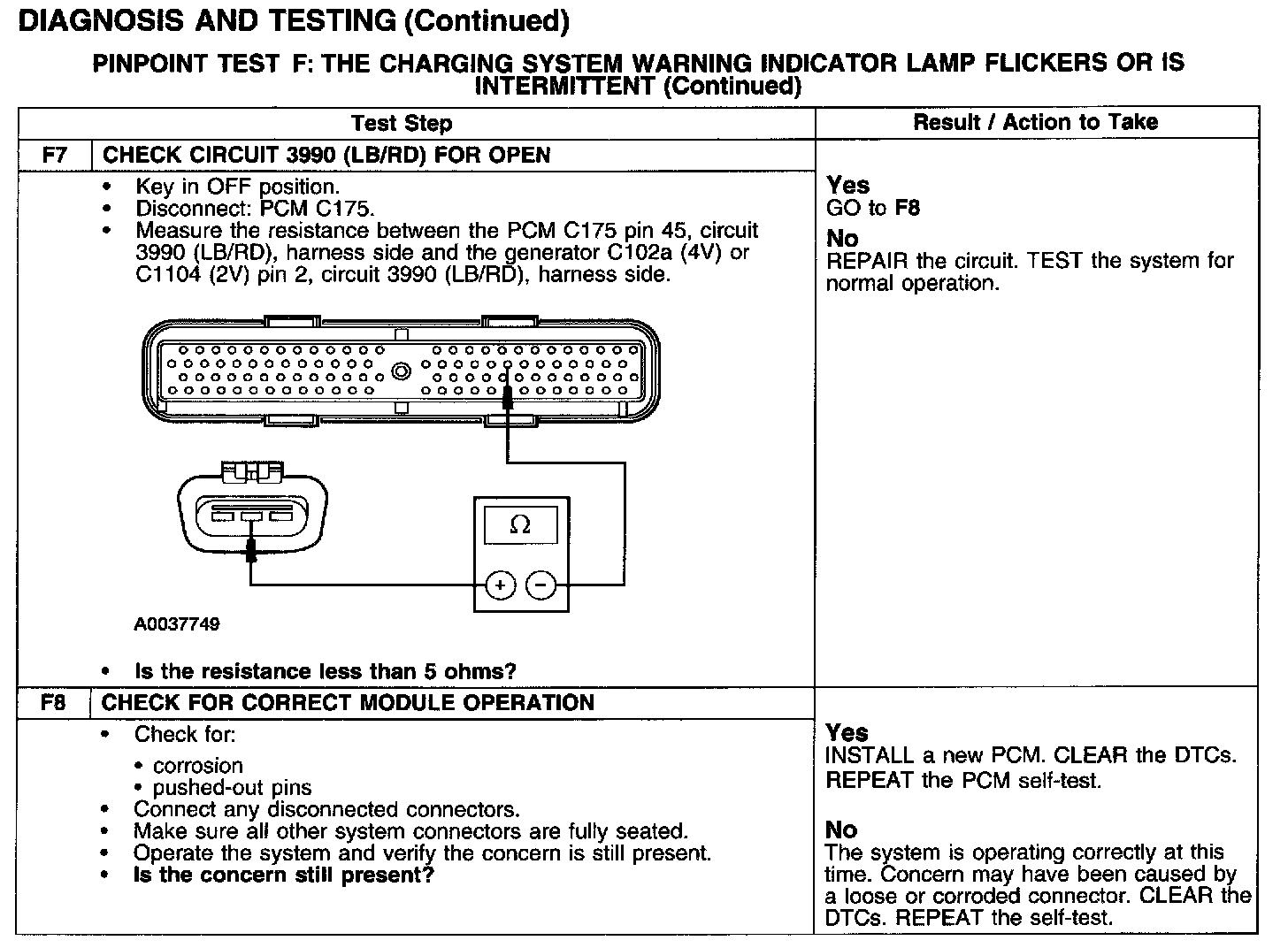 Test F: Charging Indicator Flickers Or Is Intermittent