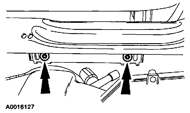 7. Through the glove box opening, remove the passenger air bag module retaining bolts.