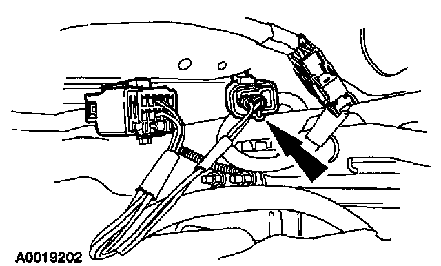 21. Remove the restraint system diagnostic tool from the vehicle harness side of the four-pin clockspring electrical connector at the base of the steering column.
